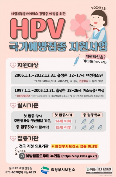 의정부시 보건소, 자궁경부암 90% 예방하는 사람유두종바이러스 백신 무료 접종하세요