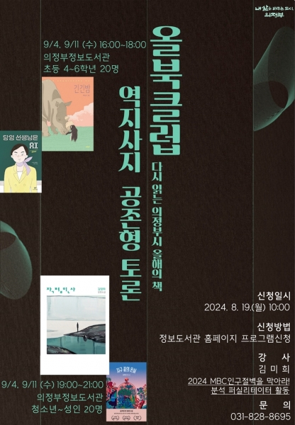 [금요저널] 의정부시는 9월 한 도시 한 책 읽기의 일환으로 다시 읽는 올해의 책 ‘올북클럽: 역지사지 공존형 토론’을 운영한다.