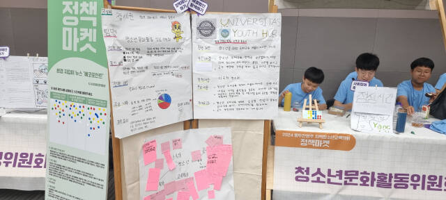 이날 오후 1시 문을 연 정책마켓에서 청소년들은 컨벤션센터에 설치된 각 부스에서 그동안 의회에 참여하면서 생각하고 고민했던 문제들을 해결하기 위한 방안들을 열심히 설명했다.