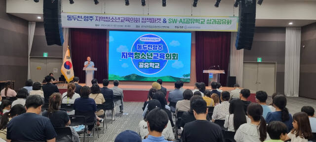 동두천양주지역청소년교육의회가 17일 오후 1시부터 4시까지 경기섬유종합지원센터 컨벤션홀에서 개최한 정책마켓에 동두천양주 지역청소년교육의회(서정대 협력) 참여학생 60여명, SW·AI 공유학교(동양대 협력) 참여학생 90여명, 김영관 동두천양주교육지원청 교육과장, 강수현 양주시장, 경기도의원, 시의원, 학부모 등 300여명이 참석해 성황을 이뤘다.