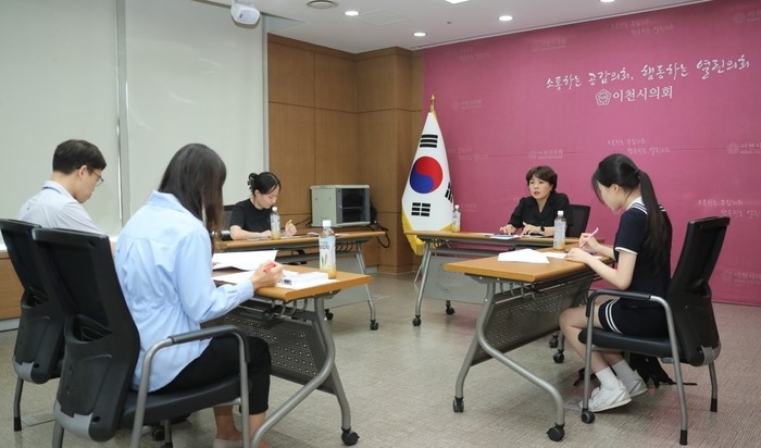 이천시의회 박노희 의원이 지난 14일 의회 브리핑실에서 효양고 학생들과 입양가정 정책에 대한 간담회를 진행했다.