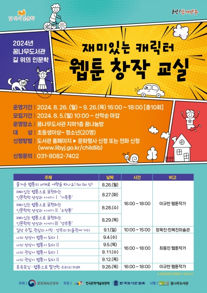 [금요저널] 양주시는 꿈나무도서관에서 오는 26일부터 ‘재미있는 캐릭터 웹툰 창작교실’주제로 길 위의 인문학 프로그램을 운영한다고 19일 밝혔다.