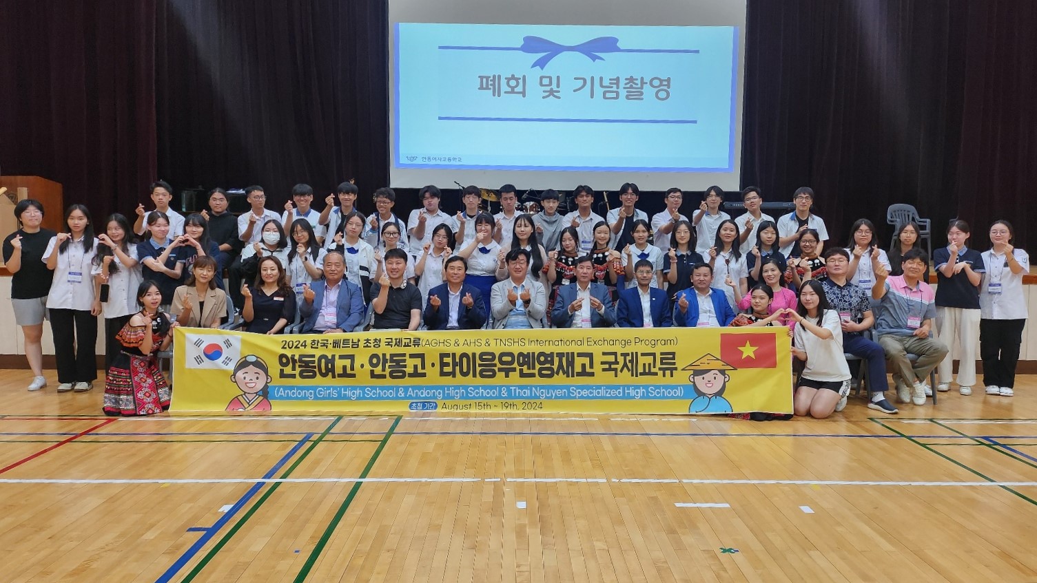 □ 안동여자고등학교(교장 김현국)는 안동고등학교와 합동으로 8월 15일부터 19일까지 베트남 타이응우옌 영재고등학교 교사단 4명과 학생 교류단 21명을 초청하여 국제교류 프로그램을 진행했다.