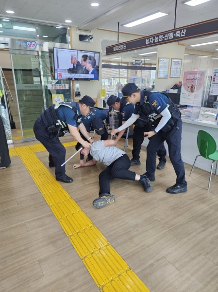 이번 모의훈련은 최근 증가하고 있는 악성 민원으로부터 직원을 보호하고 비상상황 시 경찰과의 유기적인 협력을 통해 대처 능력을 향상시키기 위해 마련했다.