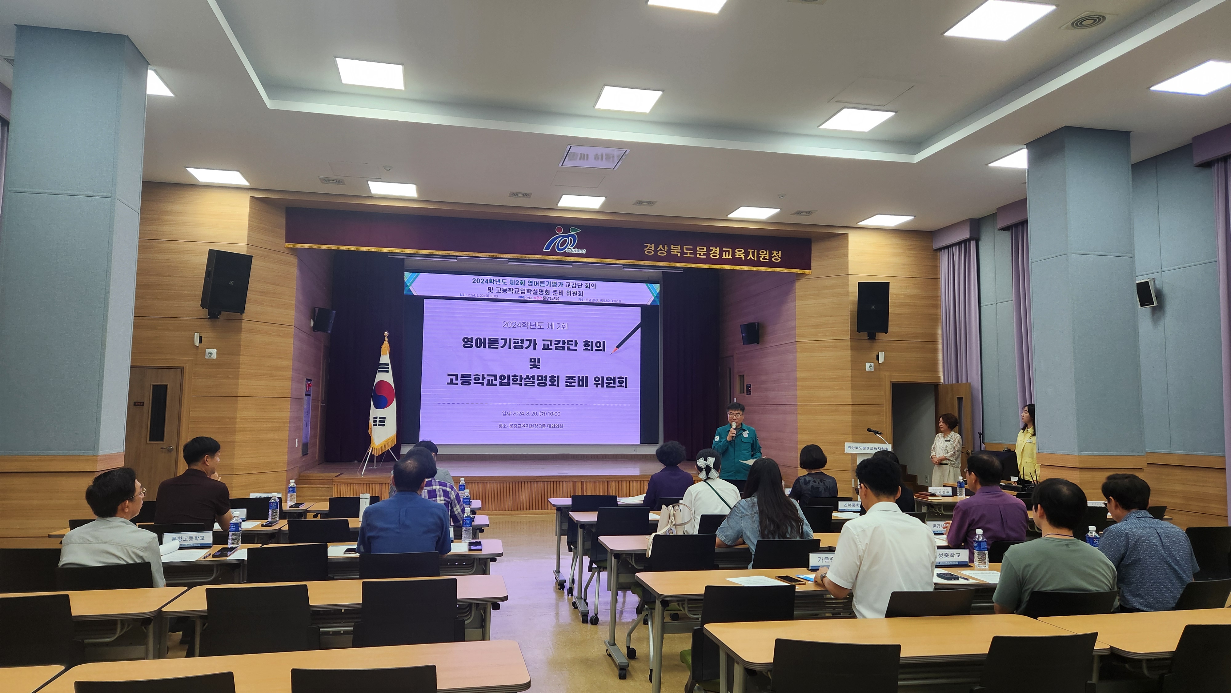 □ 문경교육지원청(이경옥 교육장)은 8월 20일 오전 10시에 관내 중고등학교 교감단을 대상으로 제2회 영어듣기능력 평가에 관한 연수를 실시했다.
