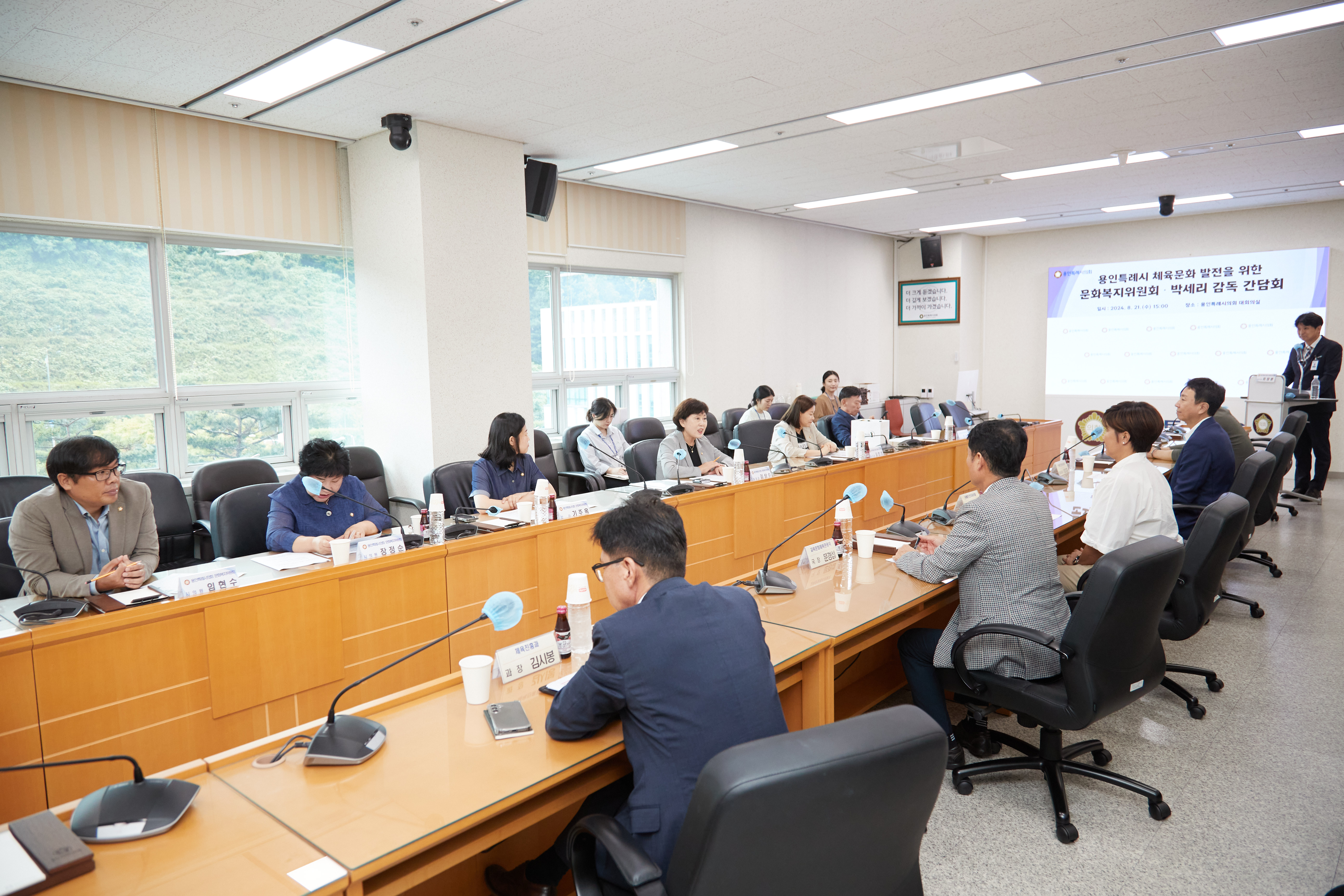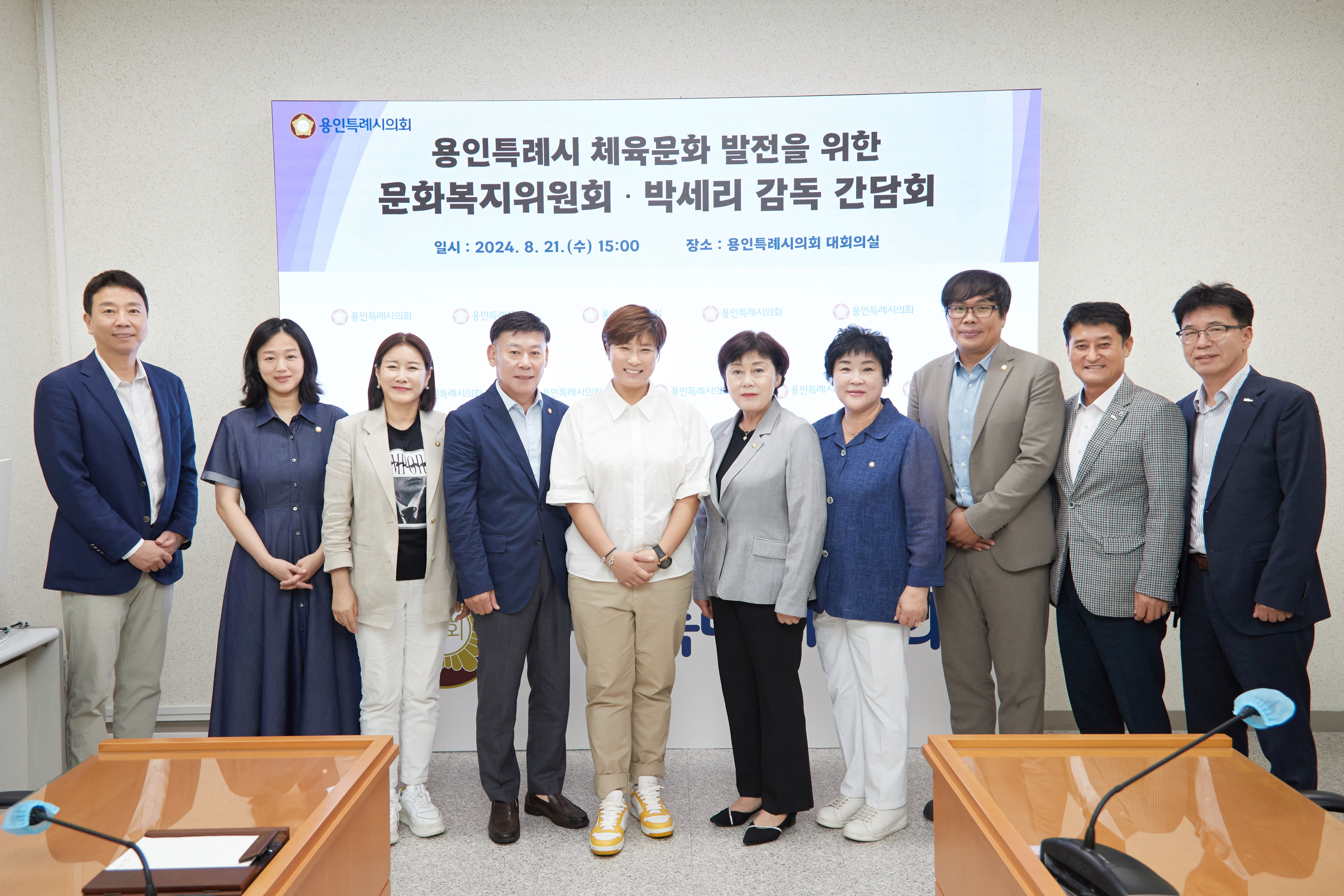 용인특례시의회 문화복지위원회(위원장 김상수)는 21일 의회 대회의실에서 용인특례시 체육문화 발전을 위한 박세리 전 감독과의 간담회를 개최했다.