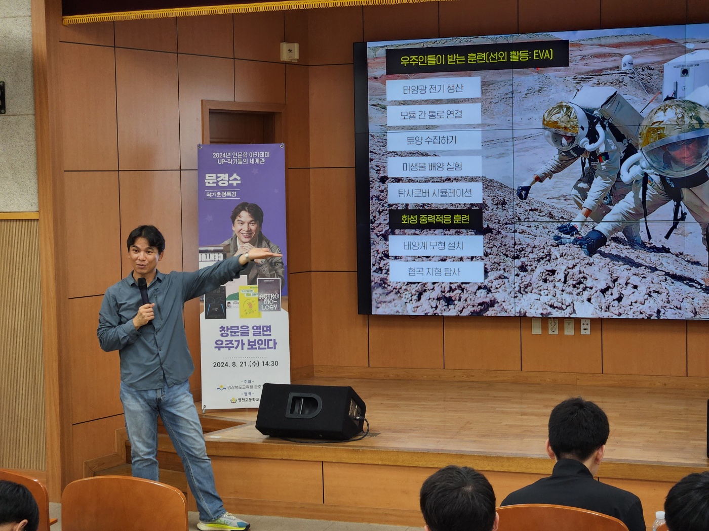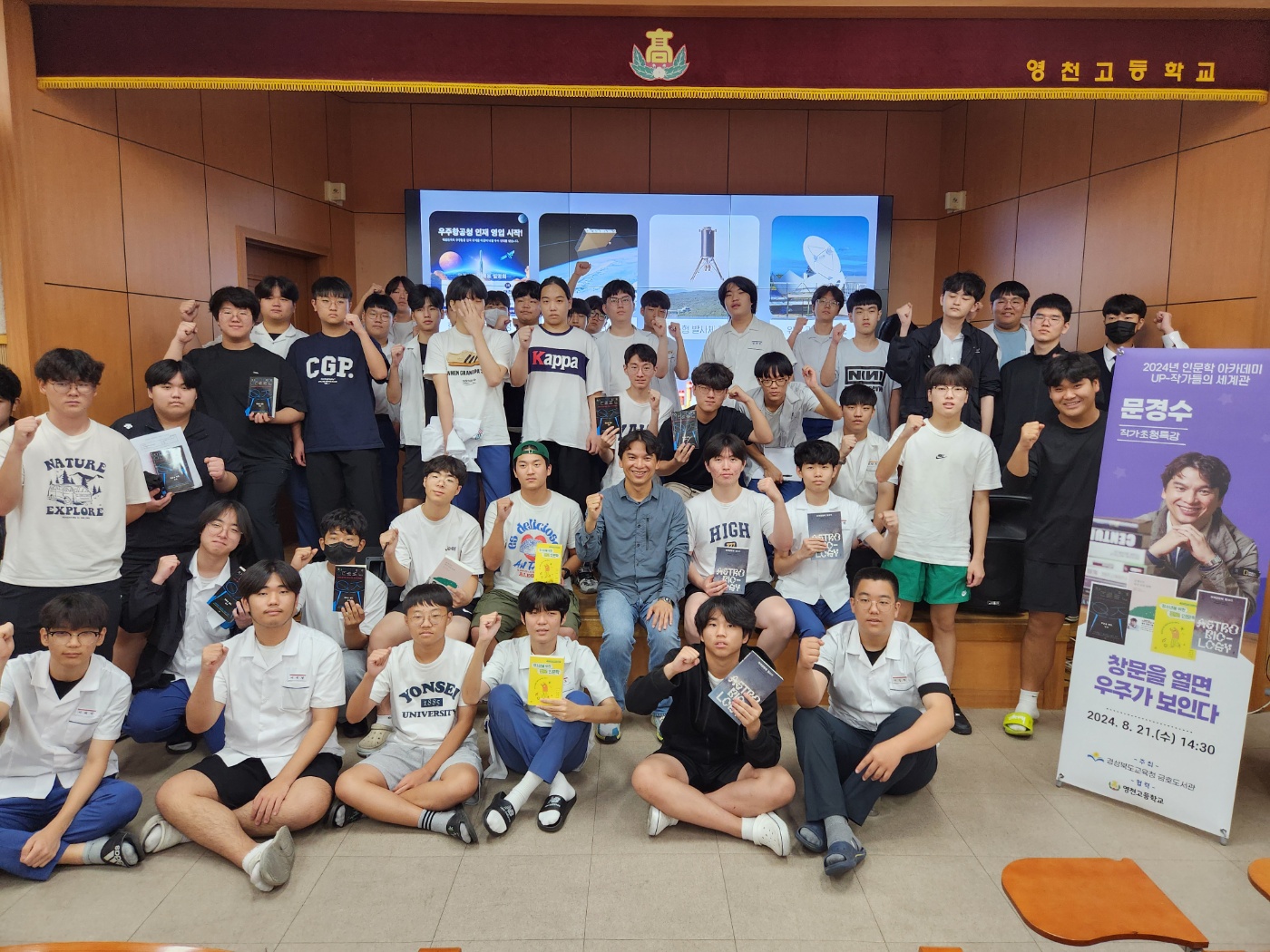 영천고(교장 박영남)는 영천 금호도서관 주관으로 문경수 작가를 초청하여 ‘창문을 열면 우주가 보인다’를 주제로 특별한 북토크를 개최했다. 이번 행사는 경북형 과학중점학교 영천고 학생들의 과학과 우주에 대한 흥미를 높이고 학생과 작가간의 직접적인 소통을 통해 다양한 시각과 영감을 제공하고자 마련되었다.