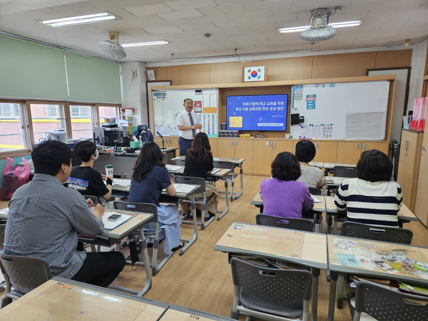 남산초등학교(교장 이우식)는 8월 21일(수) 교내 교원들을 대상으로 ‘미래지향적 학교 교육을 위한 현장 중심 교사 수준 교육과정 연수’를 실시했다.