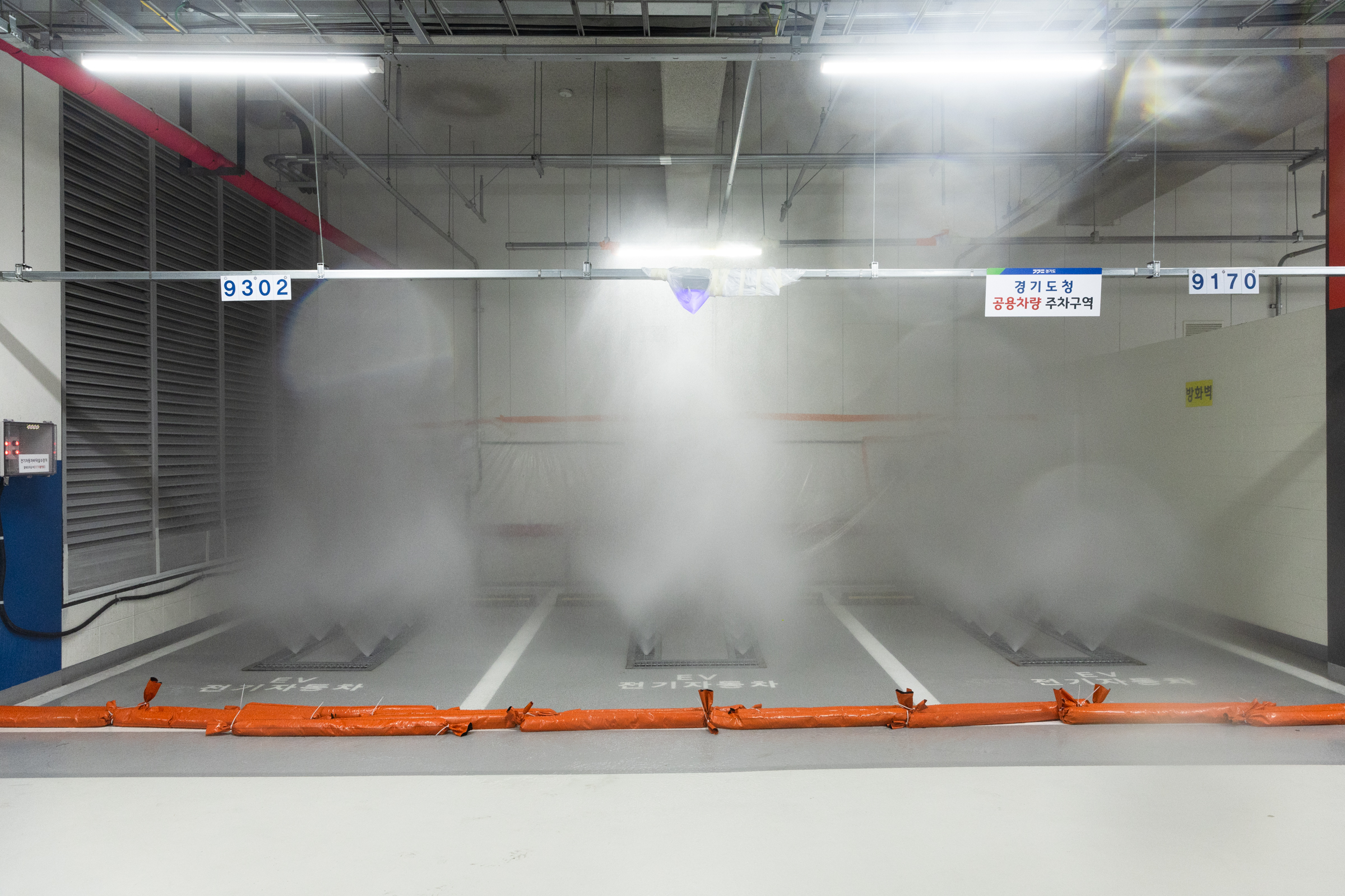 도는 또, 지하 2층 전기차 충전구역 상부에 설치된 스프링클러헤드를 법정 방수량보다 큰 분당 115리터 이상의 방수능력이 있는 것으로 교체해 신속하게 화재 진압이 가능하도록 했다. 지하주차장 내 연기 확산 방지를 위한 질식소화포도 비치했다.