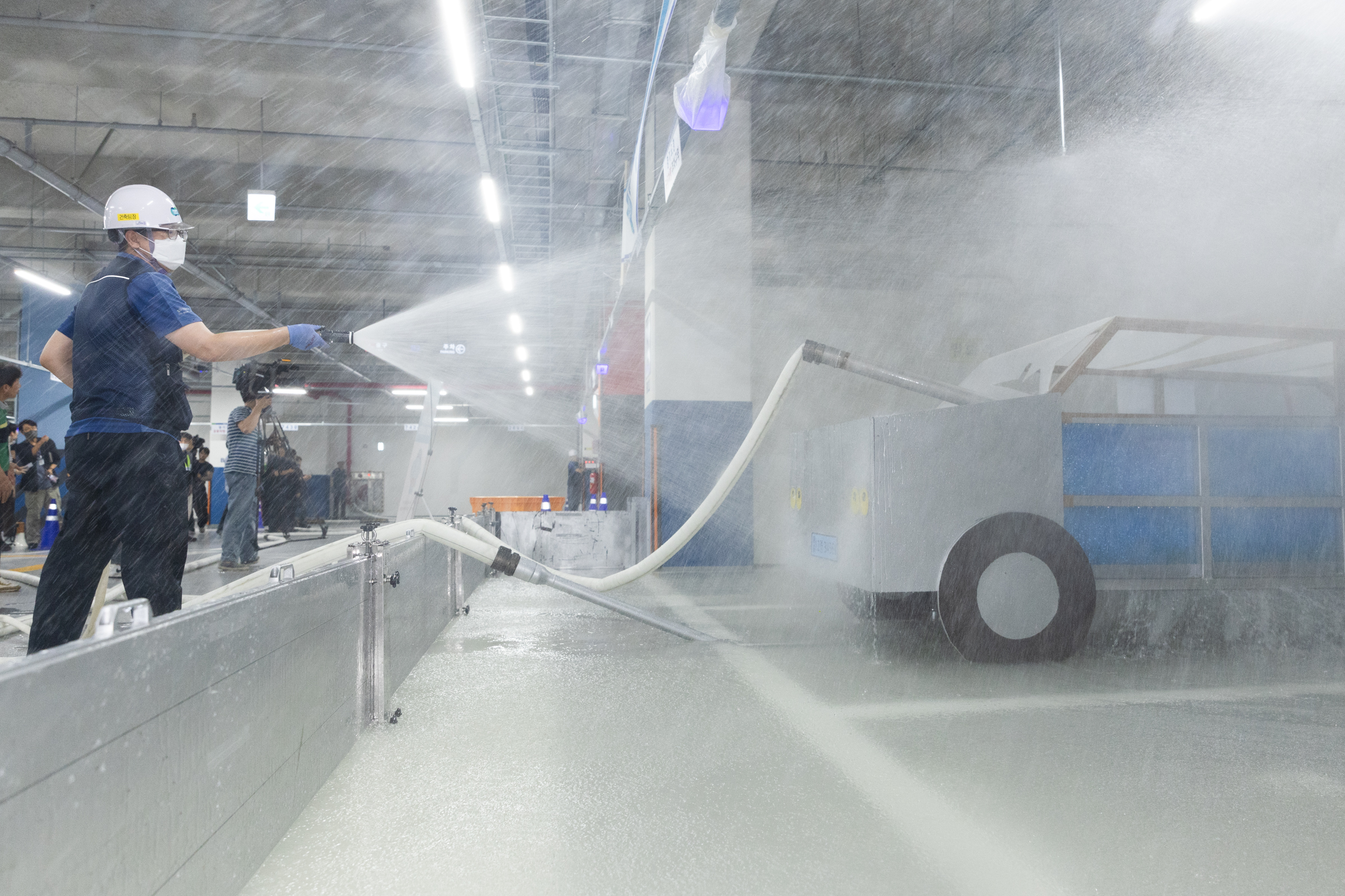 도에서 자체 제작한 상방향 방사장치와 돌파관창은 차량 하부와 실내에 직접 소화수를 방수하여 차량 하부에 위치한 고전압 배터리를 신속하게 냉각시켜 화재피해를 최소화할 수 있다. 물막이판은 화재진압을 위해 방수된 물로 전기차 배터리를 침수시켜 최종 진압하는 시설이다.
