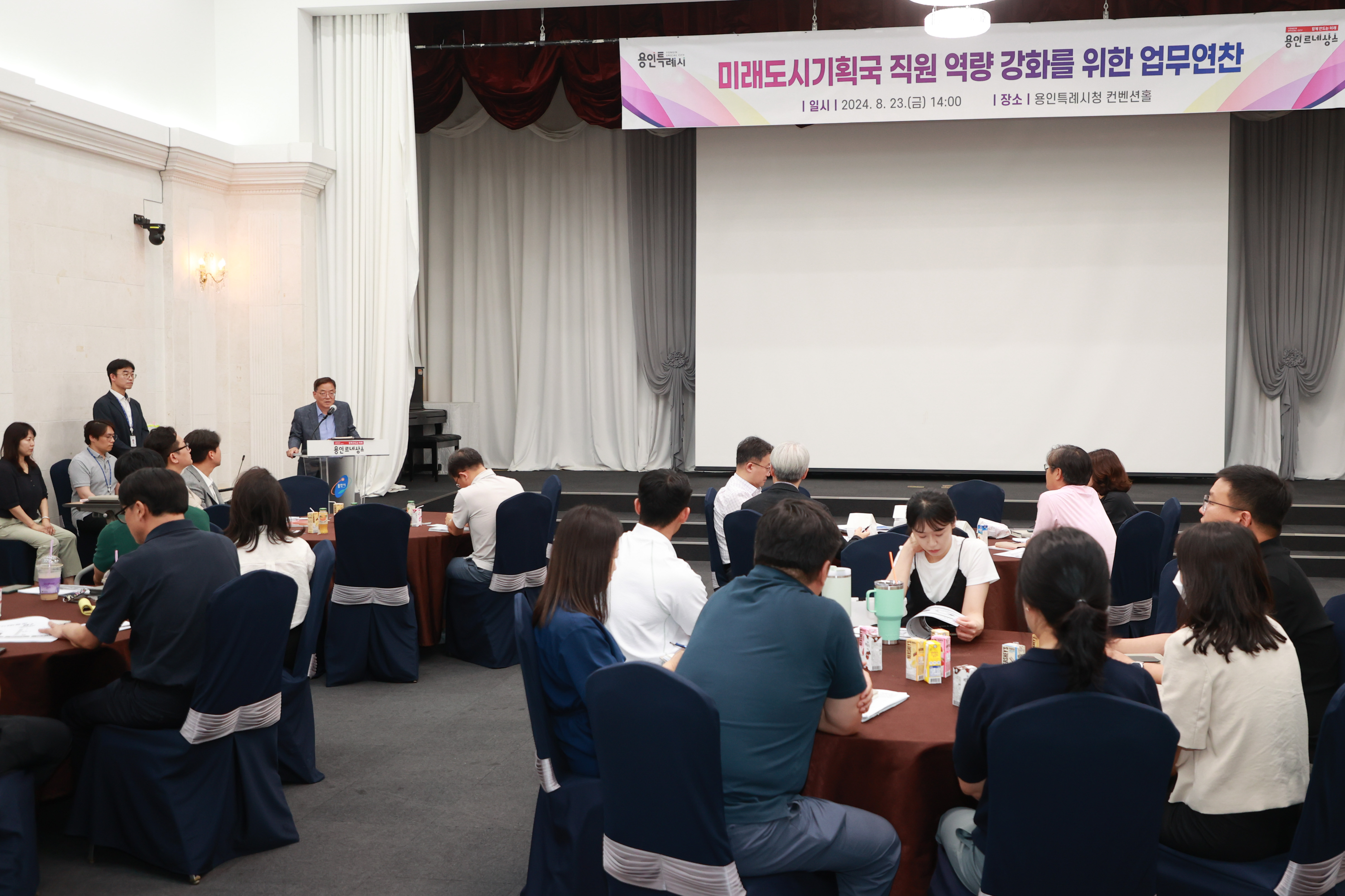 용인특례시(시장 이상일)는 23일 시청 컨벤션홀에서 미래 먹거리 발굴을 목표로 전문가를 초빙해 강연을 듣는 업무 연찬회를 열었다고 25일 밝혔다.