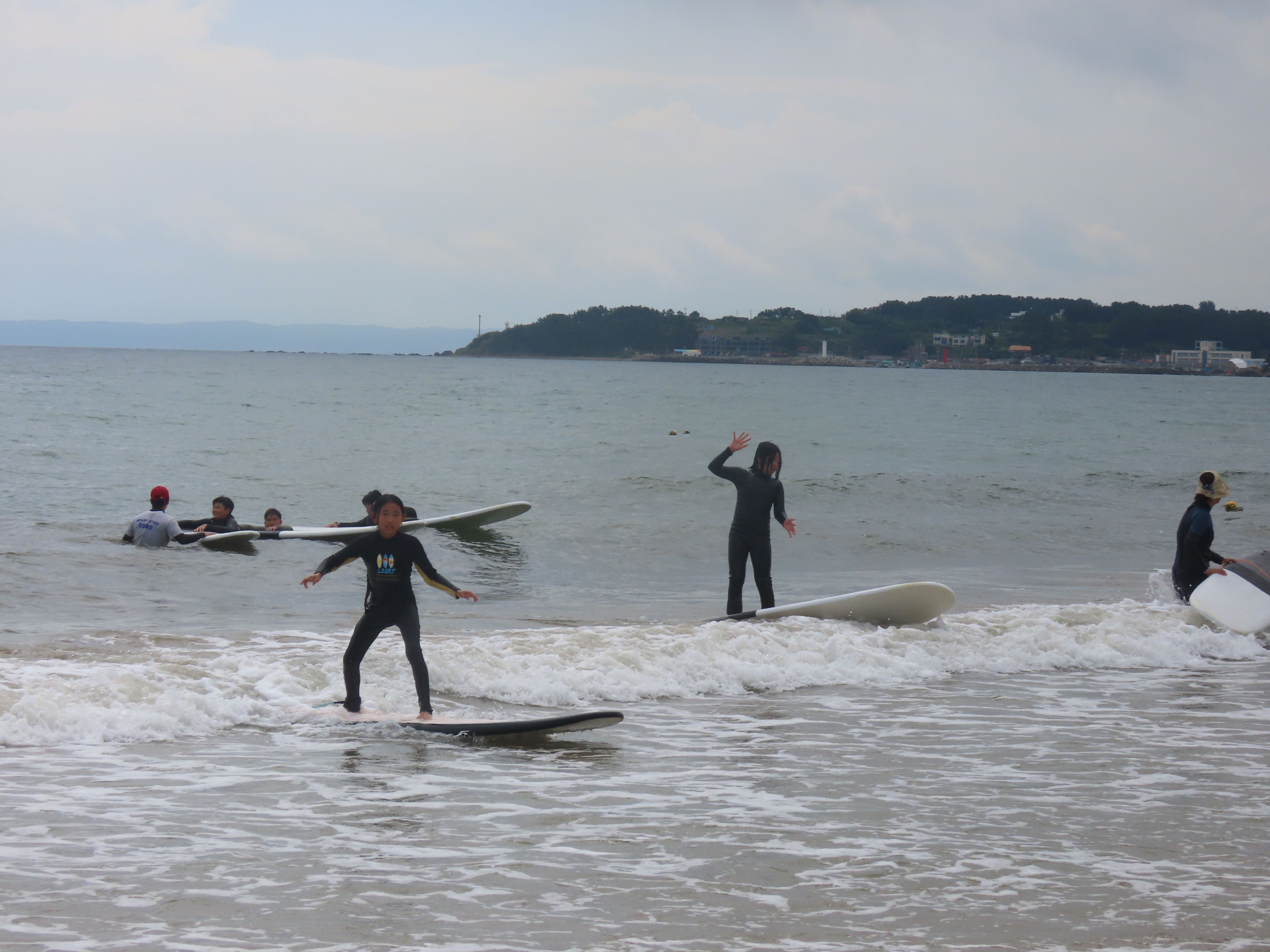 □ 19일, 20일 이틀 동안 진행된 서핑체험은 전문강사를 활용하여 안전교육 및 해변에서 보드를 다루는 법 등을 배운 후 바다로 나가 파도를 타며 서핑체험을 하였다. 처음에는 제대로 일어나지 못하고 바닷물에 빠지기를 반복하였지만 이틀간의 교육을 통해 모두 보드 위에 서서 신나게 파도를 타며 서핑을 할 수 있었다.