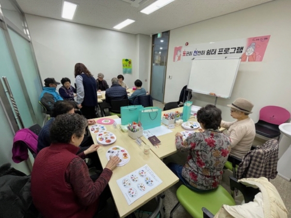 쉼터 프로그램은 다양한 인지 활동과 더불어 치매 증상이 악화되는 것을 방지하고 건강을 증진하기 위한 내용들로 구성돼 있다.