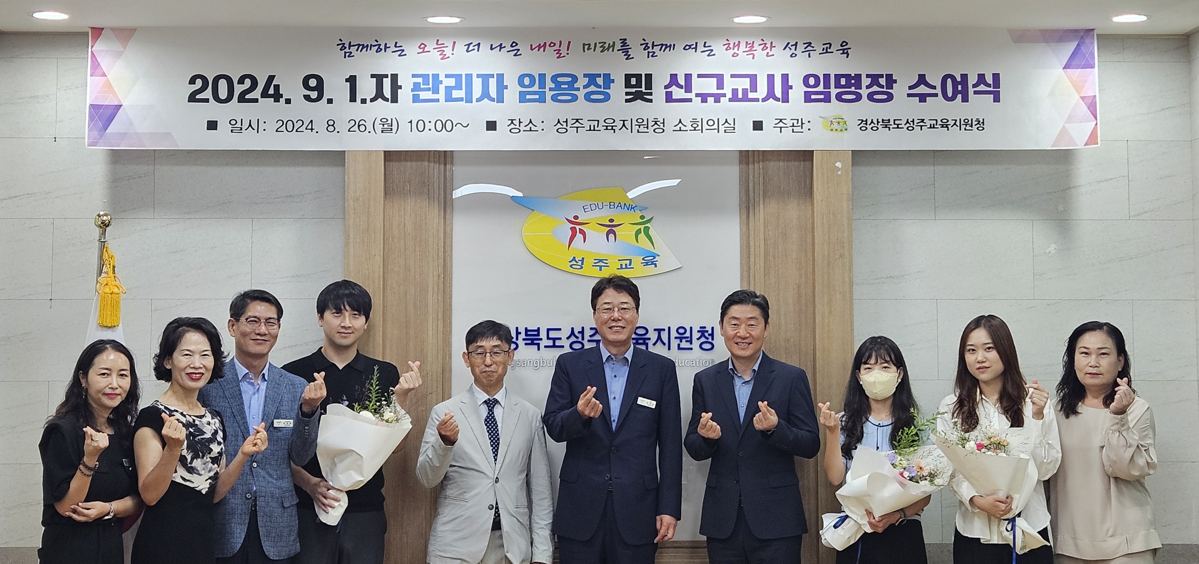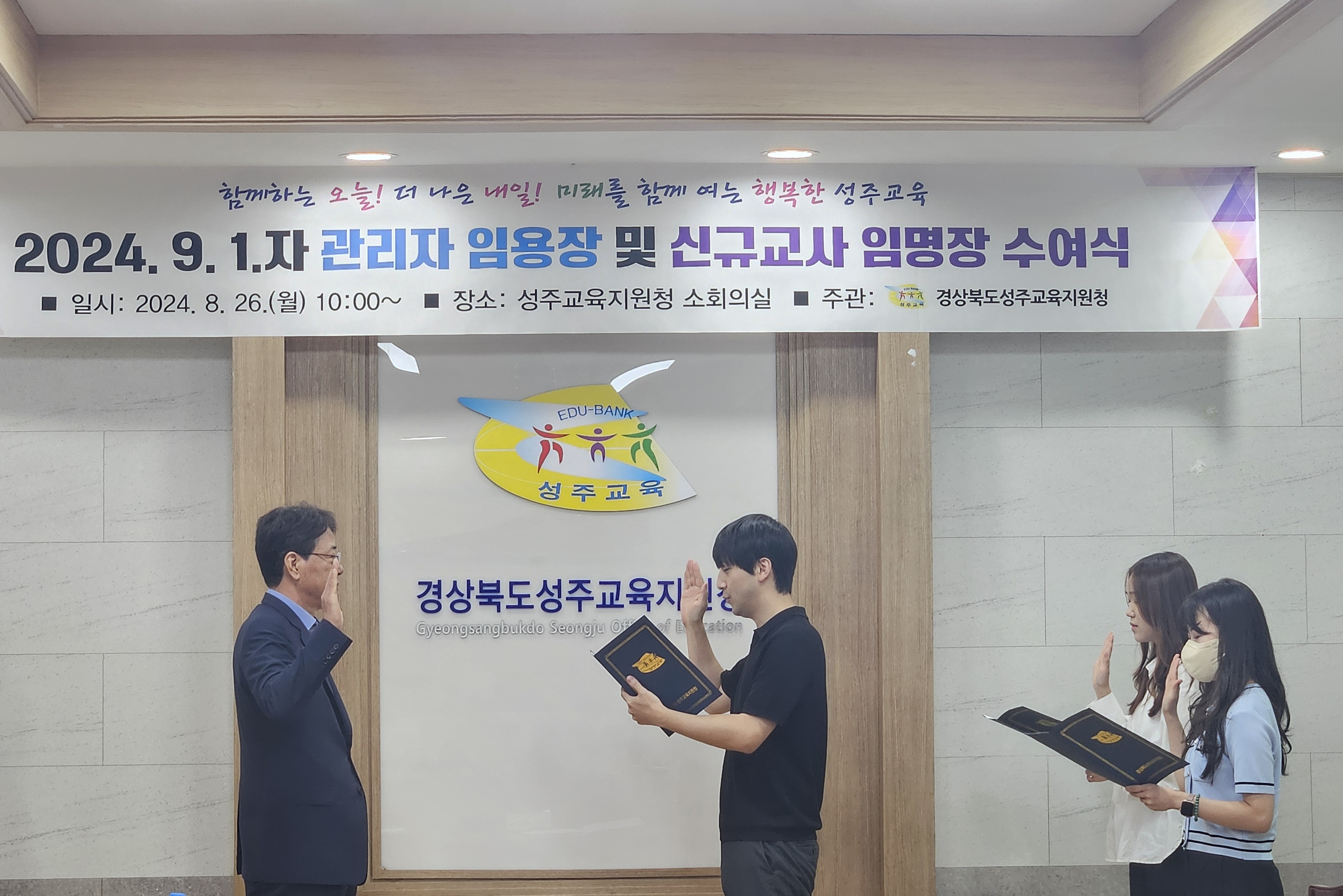 □ 경상북도성주교육지원청(교육장 채종원)은 8월 26일(월) 10시 성주교육지원청 소회의실에서 2024년 9월 1일자 전입 교감 2명, 초등학교 신규교사 3명이 참석한 가운데 전입 교감 임용장 및 신규교사 임명장 수여식을 개최하였다.