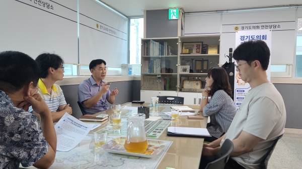 [금요저널] 경기도의회 농정해양위원회 부위원장 윤종영 의원은 22일 경기도의회 연천상담소에서 청산대전일반산업단지 고형연료 사용시설 가동에 따른 환경피해 최소화를 위해 연천군 관계자들과논의 후 즉시 경기도 관련 실·국장들과 소통하며 환경피해 최소화 방안 마련을 위한 대책 논의를 실시했다.