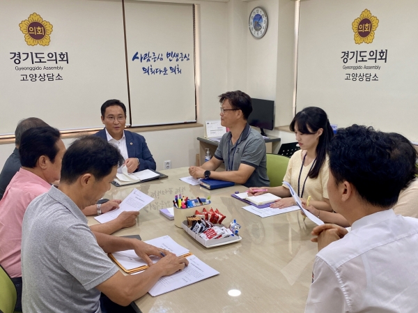 [금요저널] 경기도의회 교육행정위원회 변재석 의원이 23일 고양상담소에서 고양시청 푸른도시사업소 덕양공원관리과 관계 공무원과 성사동 주민들을 만나 성라공원 경기도 특별조정교부금을 통한 조성사업계획 주민 정담회를 개최했다.