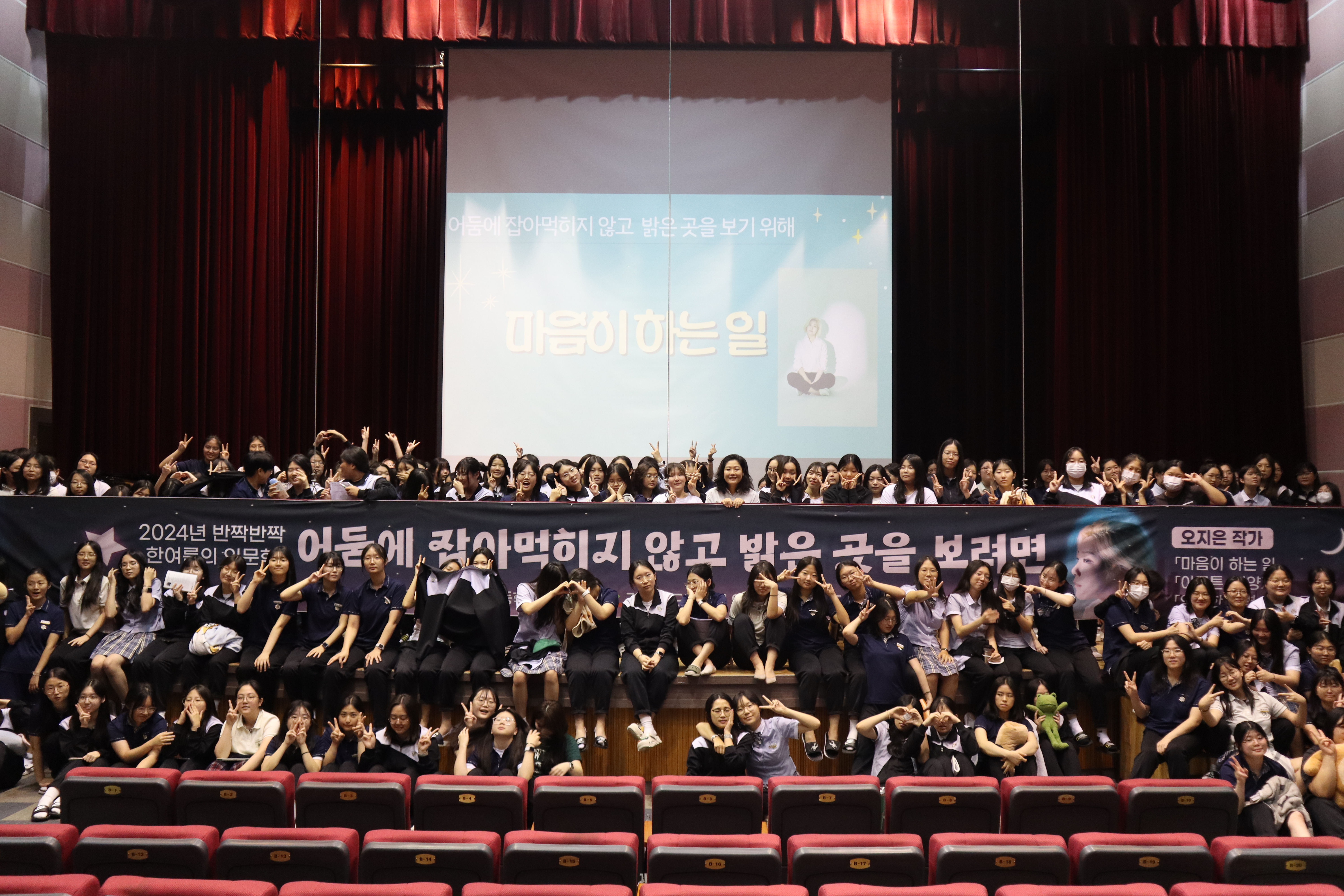 □ 경상북도교육청 안동도서관(관장 박용조)은 지난 8월 27일(화), 영주 영광여자고등학교 학생 300명을 대상으로‘마음이 하는 일’의 저자 오지은 작가를 초청하여 ‘어둠에 잡아먹히지 않고 밝은 곳을 보려면’이라는 주제로 특강을 진행했다.
