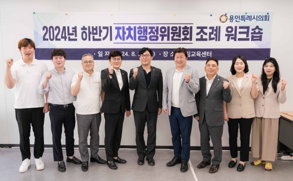 이번 워크숍은 제9대 용인특례시의회 후반기 상임위가 새롭게 구성됨에 따라 의원들의 전문성 확보와 실무 능력 향상을 위해 추진 됐으며 △조례 입안을 위한 자료조사 및 수집 △조례 입안 및 심사 방법 등의 내용으로 진행됐다.