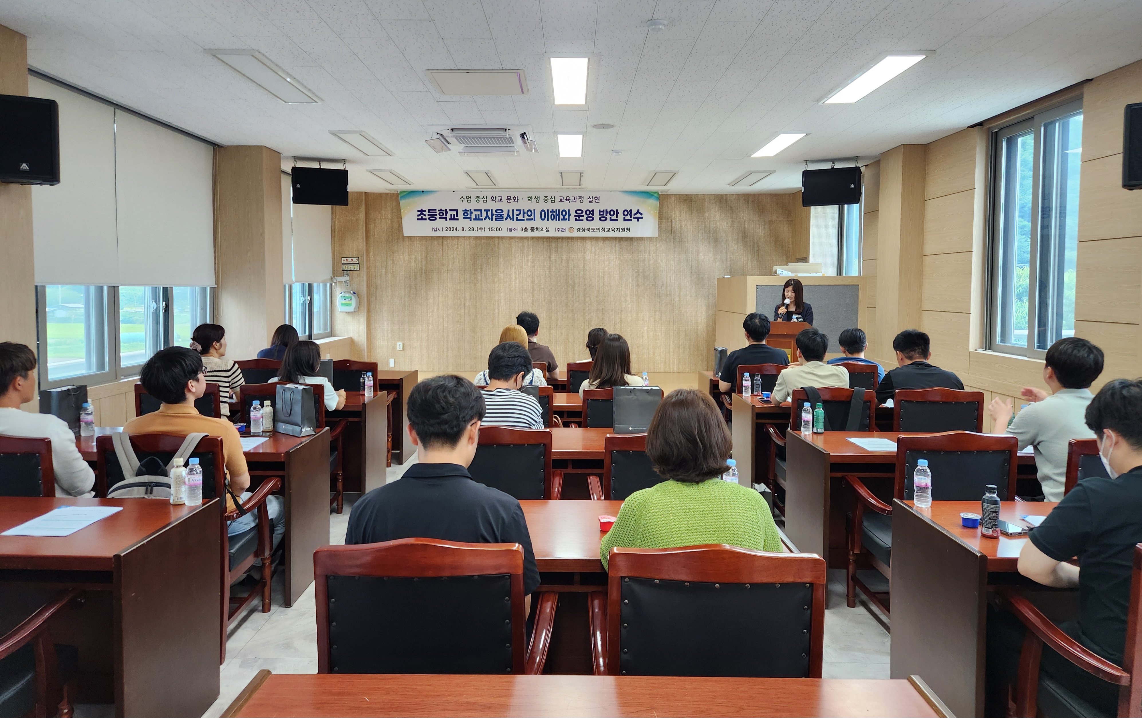경상북도의성교육지원청(교육장 박명호)은 8월 28일(수) 오후 15시부터 의성교육지원청 3층 중회의실에서 관내 초등학교 교사 25명을 대상으로 ‘초등학교 학교자율시간 이해 연수’를 실시했다.