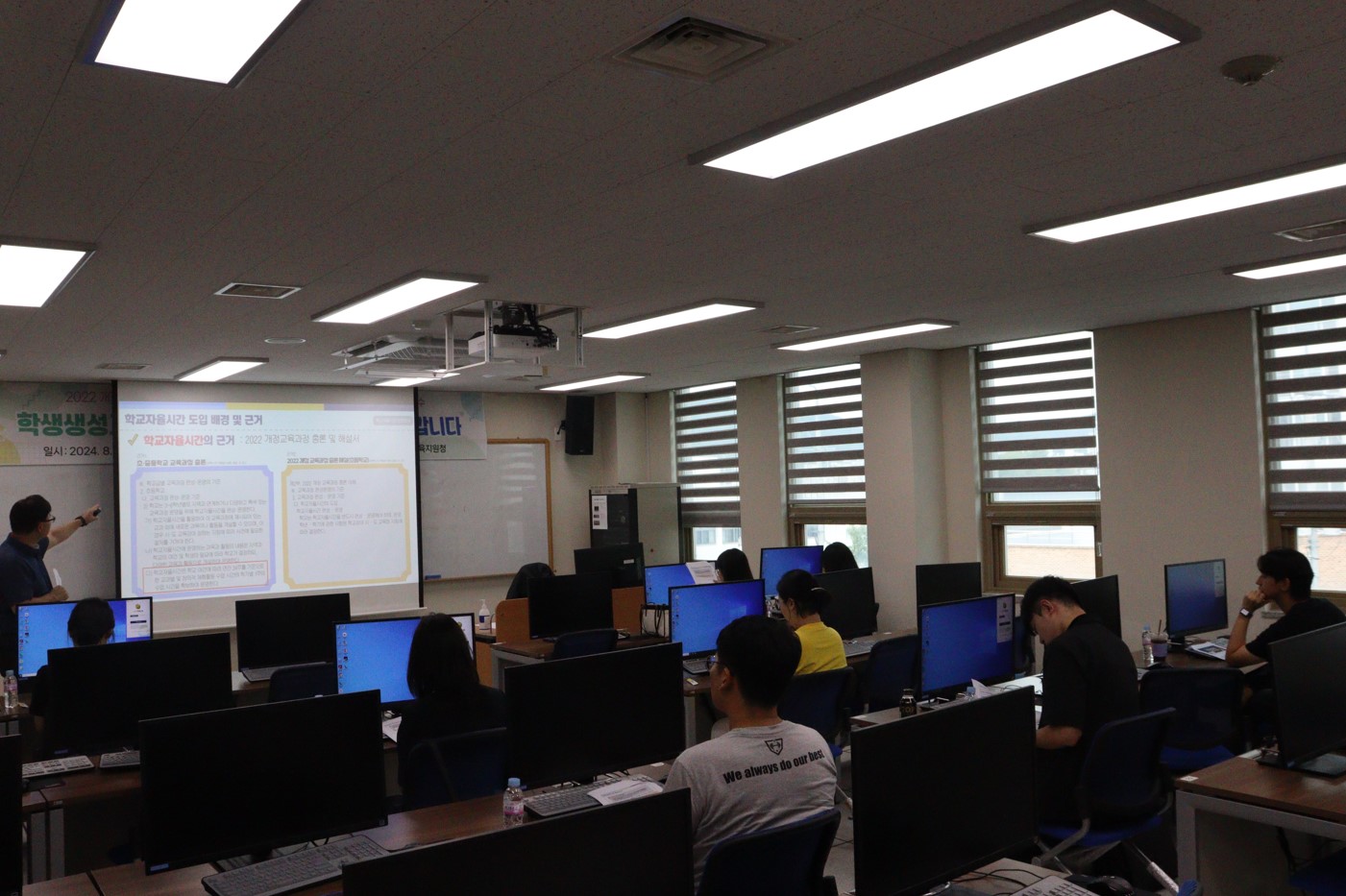 □ 이번 연수는 2022 개정 교육과정의 주요 내용 중 하나인 학교자율시간의 운영 방안을 모색하기 위해 마련되었다. 학교자율시간은 학교가 교육과정을 자율적으로 구성하고 운영할 수 있는 시간으로, 학생들의 진로와 관심사에 따라 다양한 교육활동을 제공할 수 있다.