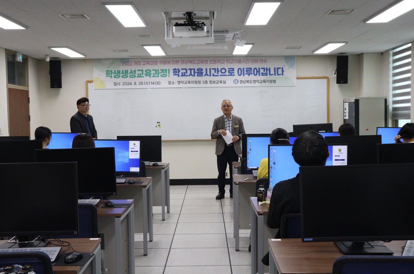 □ 경상북도영덕교육지원청(교육장 윤인한)은 8월 28일(수) 영덕교육지원청 3층 중회의실에서 관내 초등 9개교 연구업무 담당자를 대상으로 '2022 개정 교육과정 적용에 따른 학교자율시간 운영 방안 모색을 위한 전달 연수'를 실시했다.
