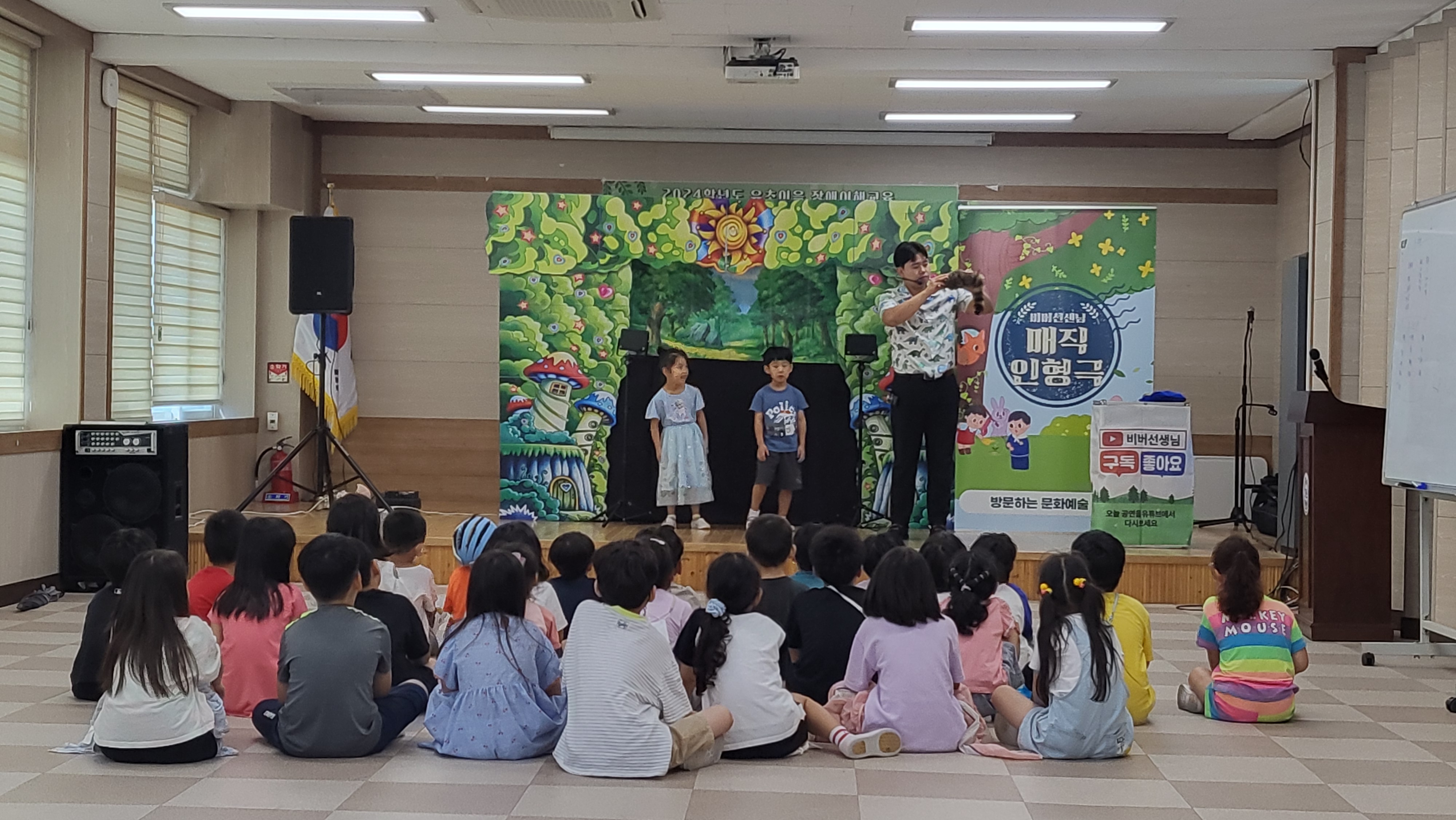 □ 가은초등학교병설유치원(원장 최을희)은 8월 29일(목) 유치원 전체 원아와 초등학교 1, 2학년 학생들을 대상으로 장애 이해 교육 관련 인형극을 함께 관람하였다.