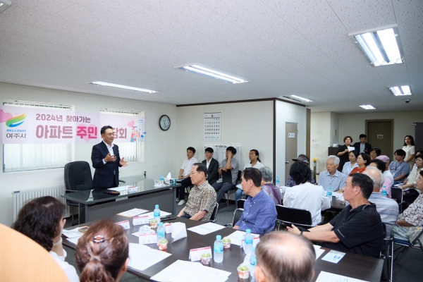 [금요저널] 여주시는 지난 8월 28일 오학동 신도브래뉴아파트 관리사무소 3층회의실에서 엄우현 통장 및 입주민, 관계 공무원 등 43여명이 참석한 가운데 올해 두 번째 2024년 찾아가는 아파트 주민 간담회를 개최했다.