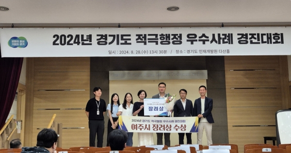 [금요저널] 여주시는 지난 8월 28일 경기도 인재개발원에서 열린 ‘2024년 경기도 적극행정 우수사례 경진대회’에서 ‘중첩규제 속 새로운 투자유치의 길을 만드는 여주시’ 사례로 장려상을 수상했다고 밝혔다.