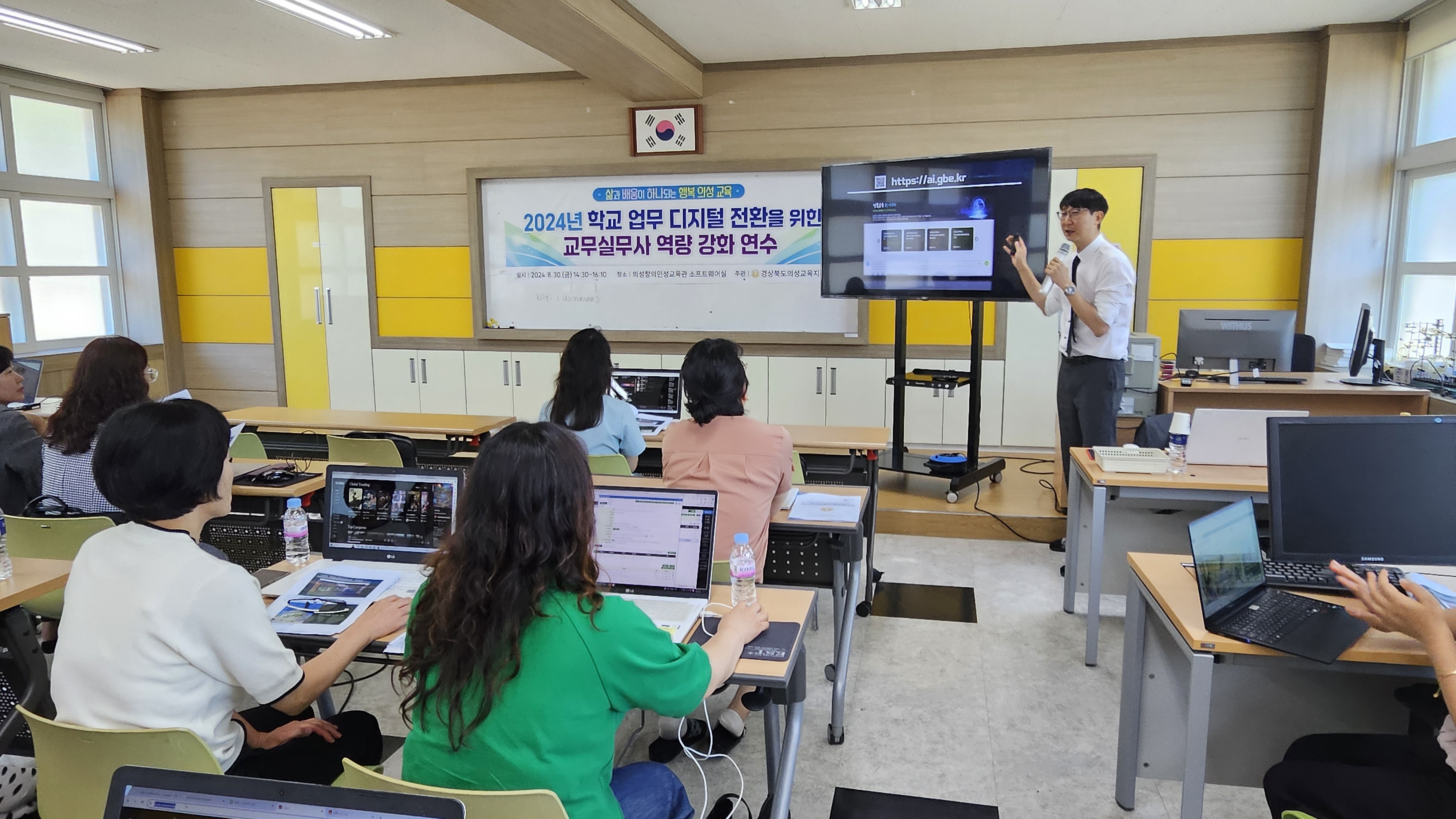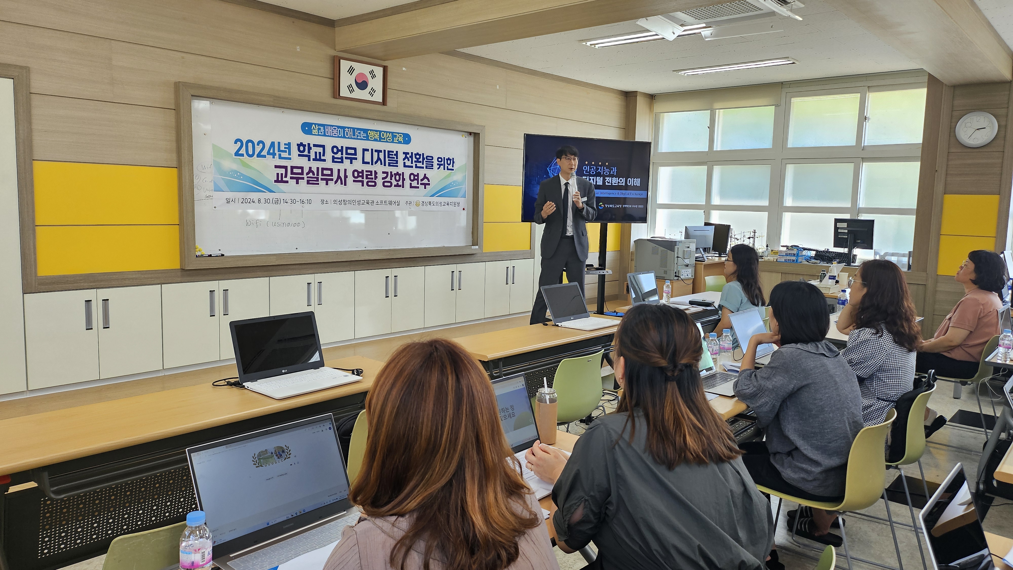 의성교육지원청 학교지원센터(교육장 박명호)는 8월 30일(금) 의성군창의인성교육관 소프트웨어실에서 의성지역 초․중․고등학교 교무실무사 32명을 대상으로 ‘학교 업무 디지털 전환을 위한 교무실무사 역량 강화 연수’를 실시했다.