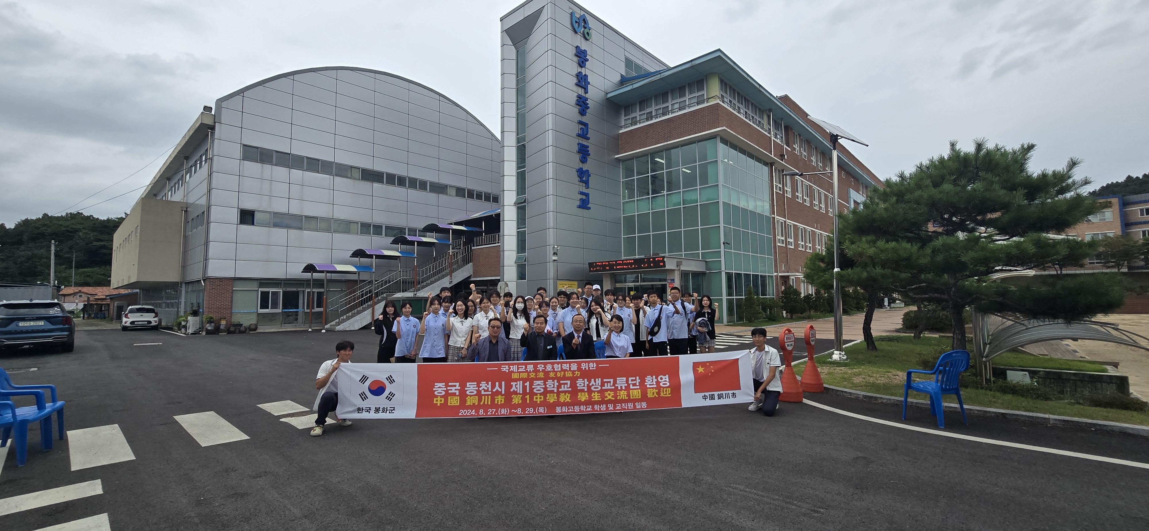 동천시 제1중학교 학생 및 인솔자 등 22명으로 구성된 국제교류 우호단은 4박 5일 일정으로 한국을 방문하였으며 8월 27일부터 2박 3일간 봉화고등학교 학생들과 함께 환영식, 합동 체험활동, 문화예술교류, 지역 내 문화탐방 등 다양한 프로그램을 통해 한국 교유의 문화를 익히고 한·중 학생 상호 간 우의를 다지는 시간을 보냈다.