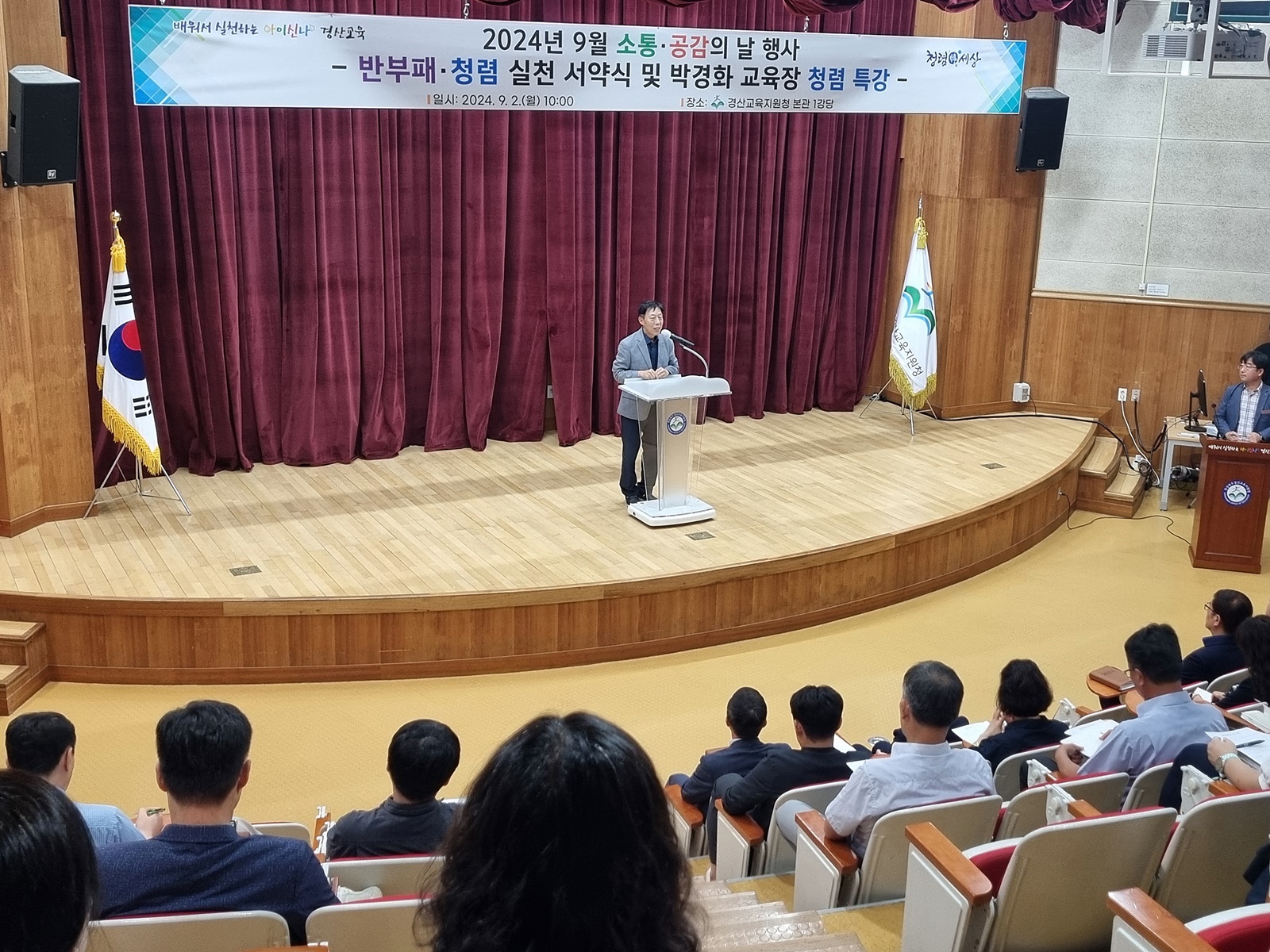 □ 박경화 교육장은 강연에서 “반부패·청렴 실천 서약식을 계기로 청렴하고 공정한 조직문화가 더욱 확산되길 바란다”고 말하며, “구성원 모두가 청렴 실천의지를 바탕으로 공정하게 업무를 처리하고