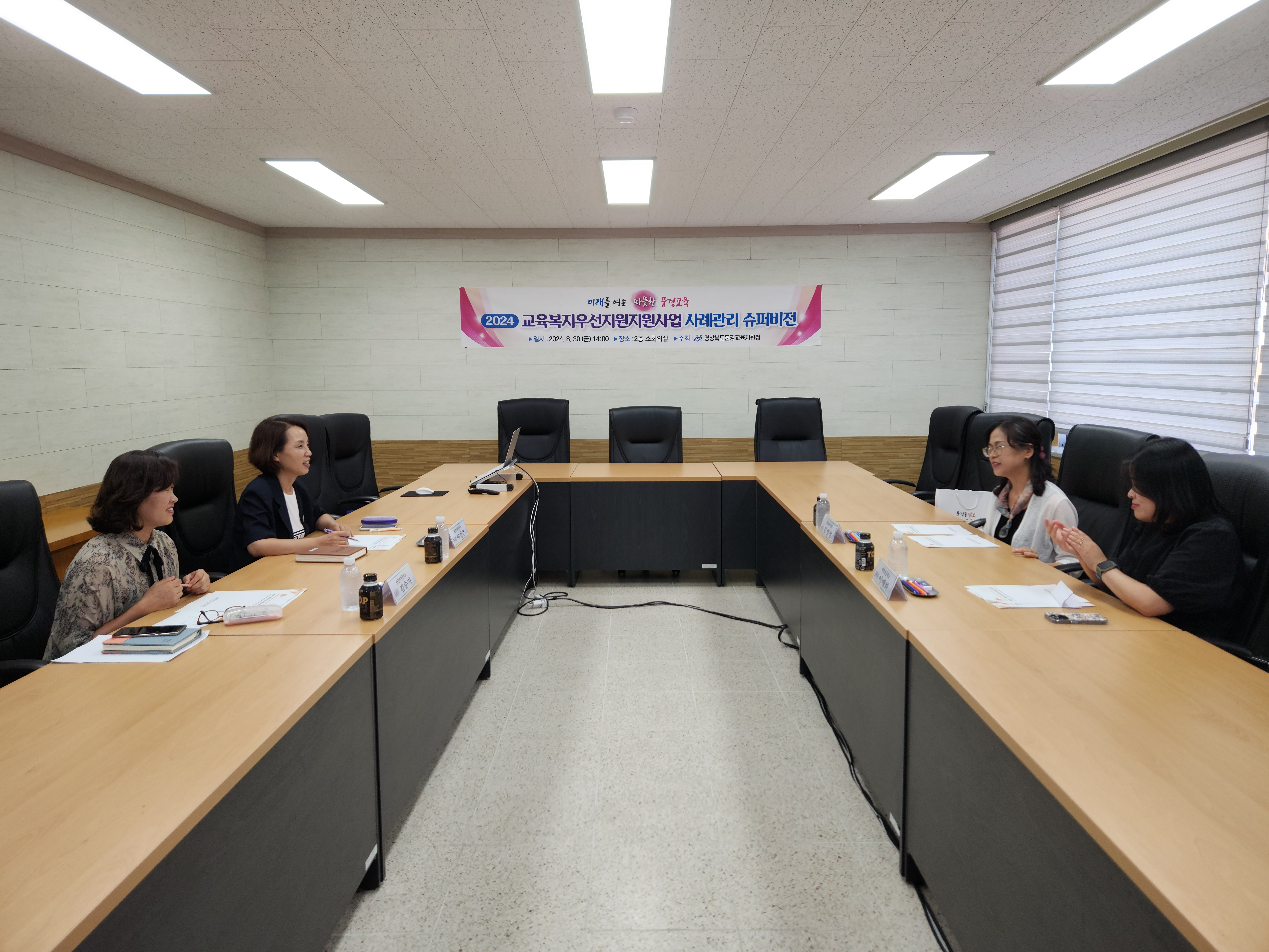□ 경상북도문경교육지원청(교육장 이경옥)은 8. 30.(금) 2시, 소회의실에서『교육복지우선지원사업 사례관리 슈퍼비전』을 실시했다.
