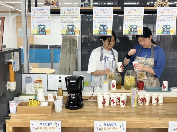 ‘토요일은 휴휴데이’는 ‘스플래시’ 동아리 단원들이 회차별로 기획 및 운영해 다양한 체험활동을 통해 풍부한 놀거리와 간식을 제공하는 행사로 이번 행사에서는 점토 찰흙 계피 화분 만들기와 에이드 제작 및 나눔 활동이 진행됐다.