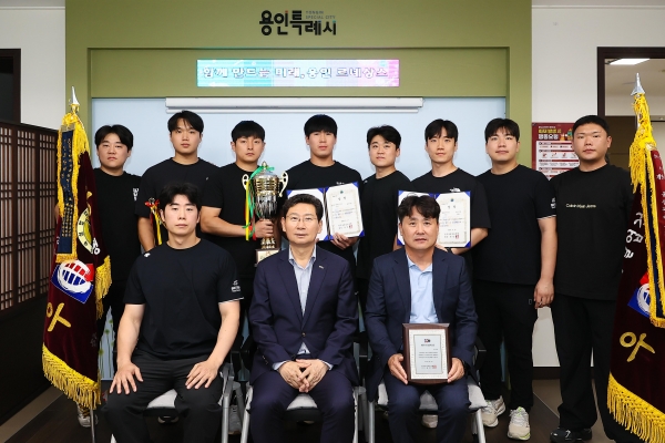 [금요저널] 용인특례시는 직장운동경기부 소속 검도팀의 우승 트로피 봉납식이 2일 청 시장실에서 열렸다고 3일 밝혔다.