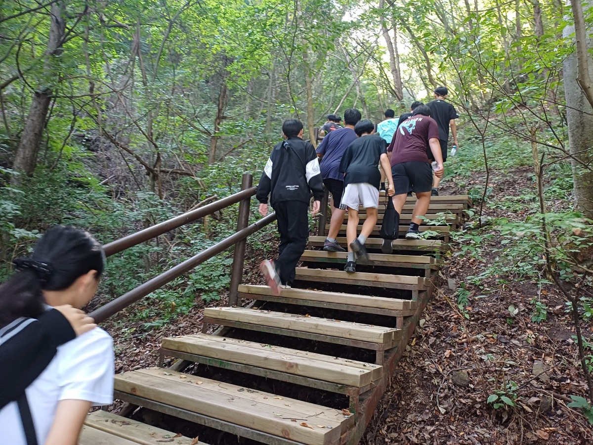 □ 행사는 오전 10시에 주왕산 국립공원에서의 등반으로 시작되었다. 학생들은 체력에 맞춰 두 개의 코스로 나뉘어 등반을 진행했다. 난이도가 낮은 계곡코스는 자연의 아름다움을 여유롭게 감상하며 하이킹을 즐길 수 있는 코스였고, 난이도가 높은 주봉 코스는 도전적인 코스를 원하는 학생들에게 적합했다. 각 코스에서는 자연과의 교감을 통해 지역의 경관을 직접 체험하고, 자신의 체력을 시험해 보는 소중한 시간을 가졌다.