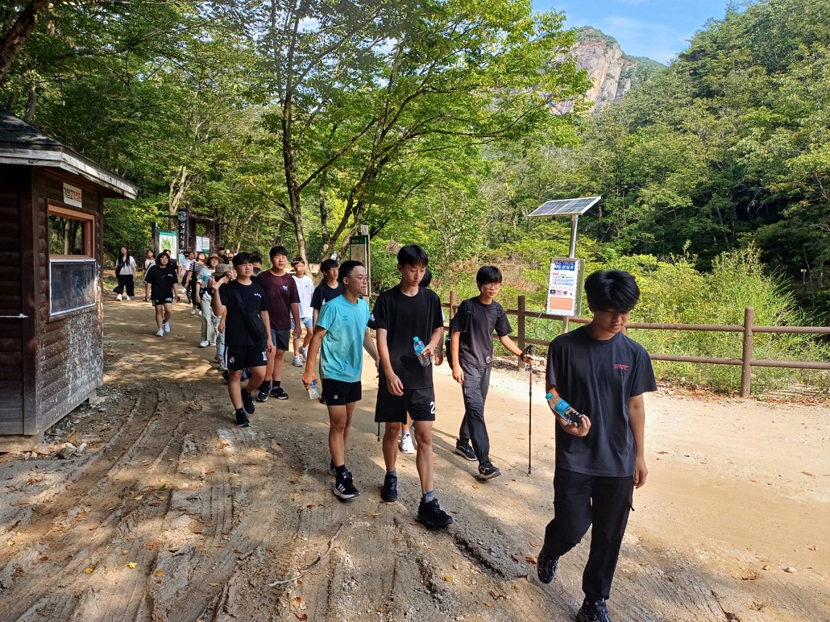 □ 2024년 9월 2일, 안덕중학교(교장 이성섭)에서는 전교생이 참여한 ‘자연과 함께하는 하이킹’ 행사가 주왕산 국립공원과 청송 백자 체험장에서 성황리에 진행되었다. 이번 행사는 우리 고장의 아름다운 자연경관과 문화를 탐방하고, 지역에 대한 애정과 학생들의 체력 증진을 목적으로 마련되었다.