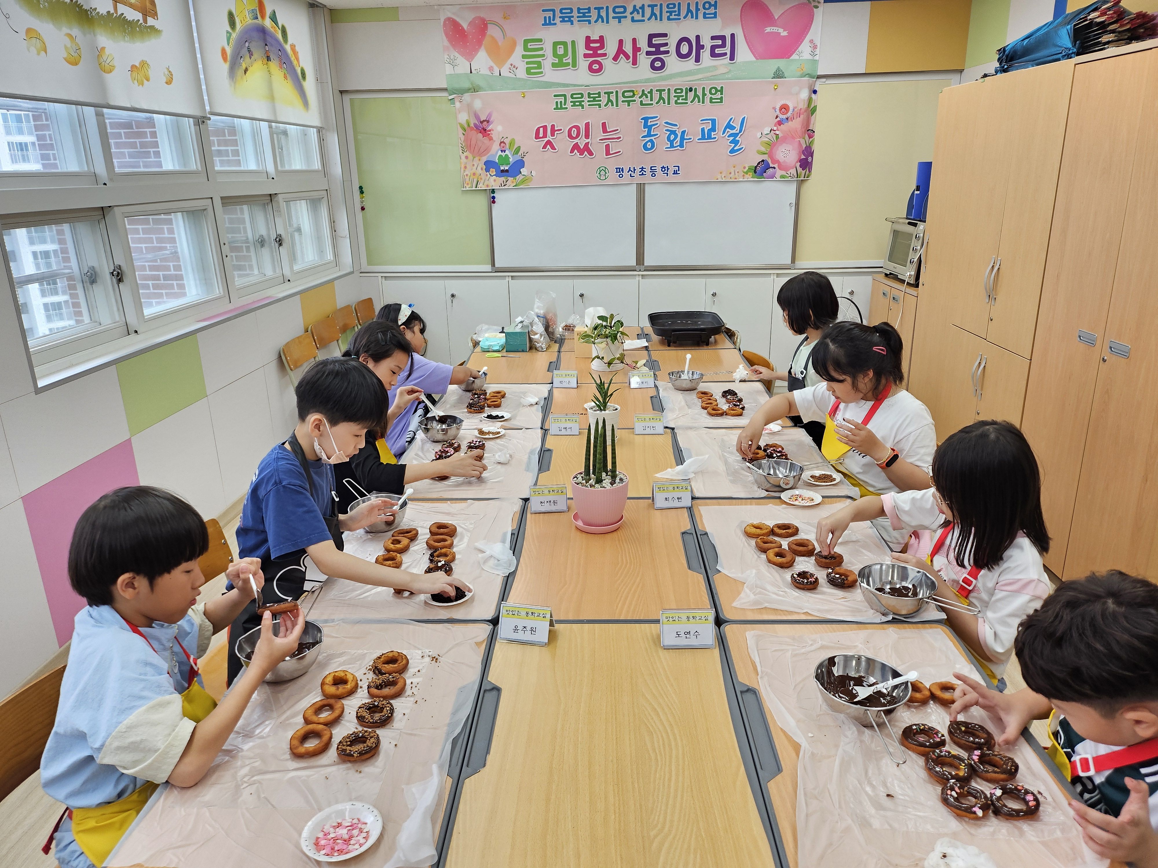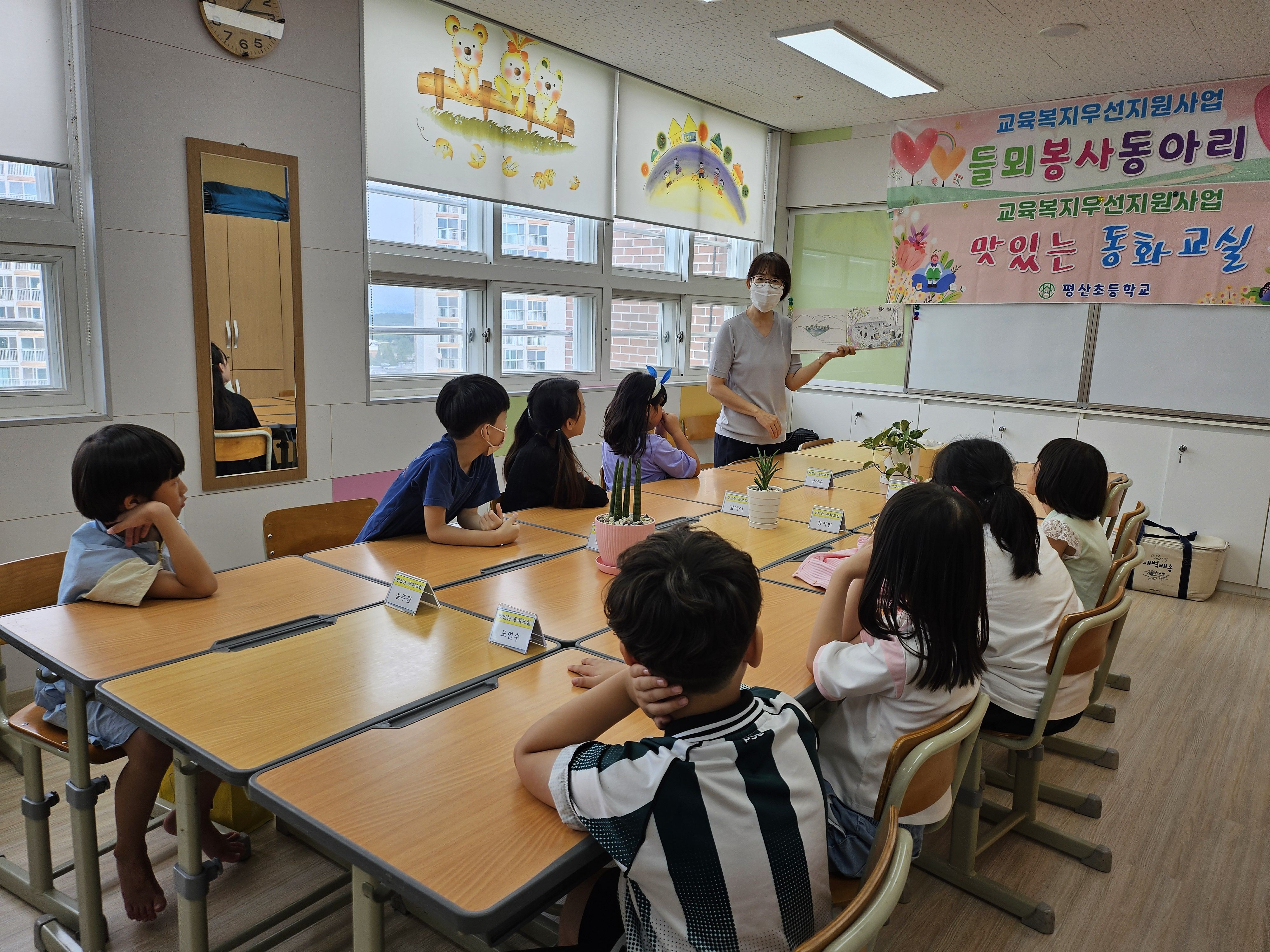 □ 평산초등학교(교장 이재구)는 교육복지우선지원사업의 일환으로 4월부터 11월까지 매주 월요일 ‘맛있는 동화교실’을 운영하고 있다.