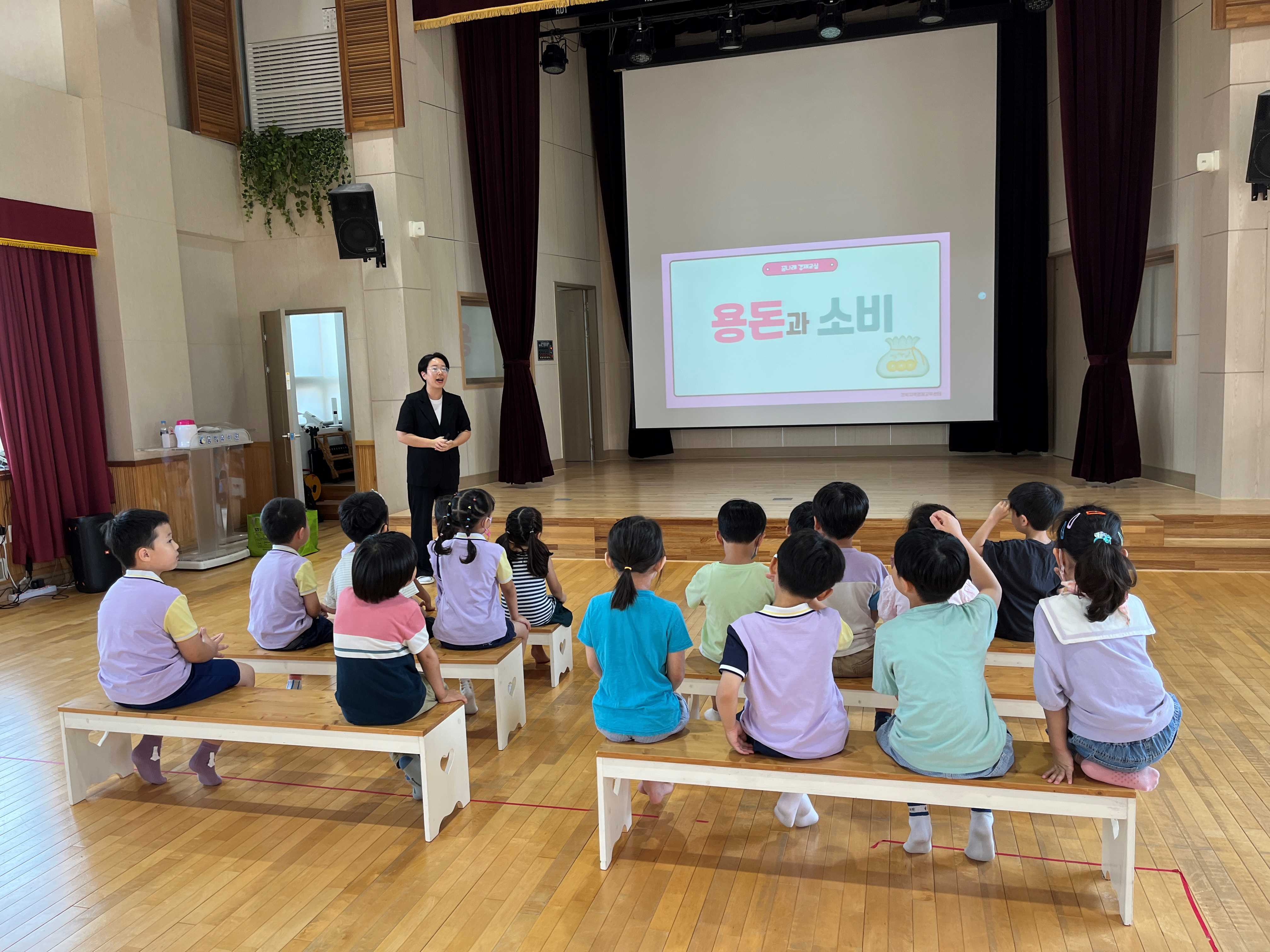 □ 꿈빛유치원(원장 김옥매)은 9월 2일(월)에 만 5세 유아 46명(2학급)을 대상으로 유치원 강당에서 꿈나래 경제 교실 활동을 실시하였다.