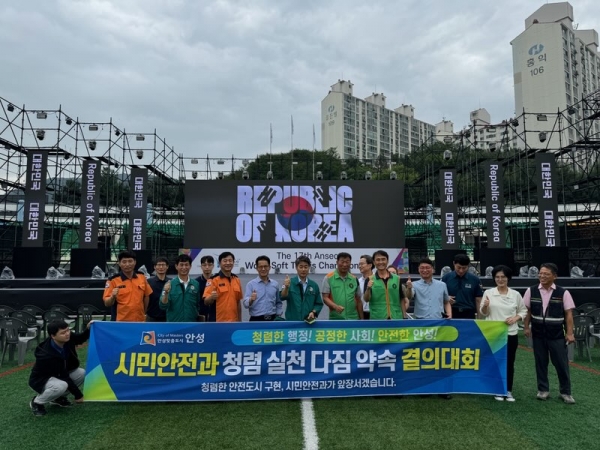 [금요저널] 안성시가 지난 2일 ‘9월 안전 점검의 날’을 맞아 제17회 안성세계소프트테니스선수권대회 관련 현장점검을 실시하고 1회용품 사용근절 및 안전하고 청렴한 도시 만들기 캠페인을 진행했다.