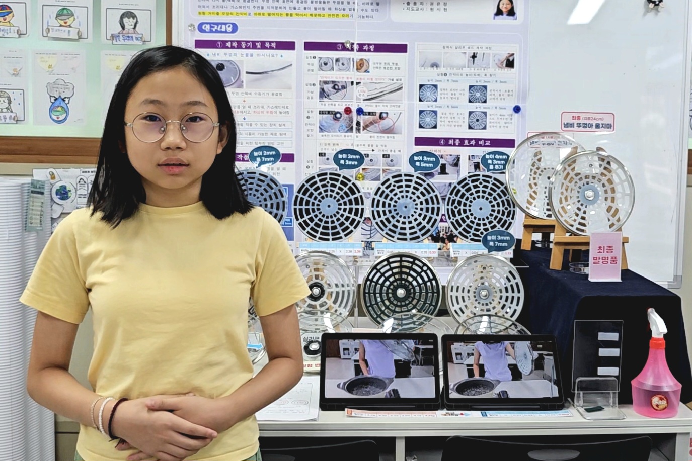 풍각초등학교 권은정 학생은 냄비 뚜껑 안쪽에서 떨어지는 물을 막아서 요리를 편리하고 안전하게 할 수 있도록 도와주는 조리도구인 ‘냄비 뚜껑아 울지마’ 발명품으로 최우수상을 수상하는 영광을 얻었다.