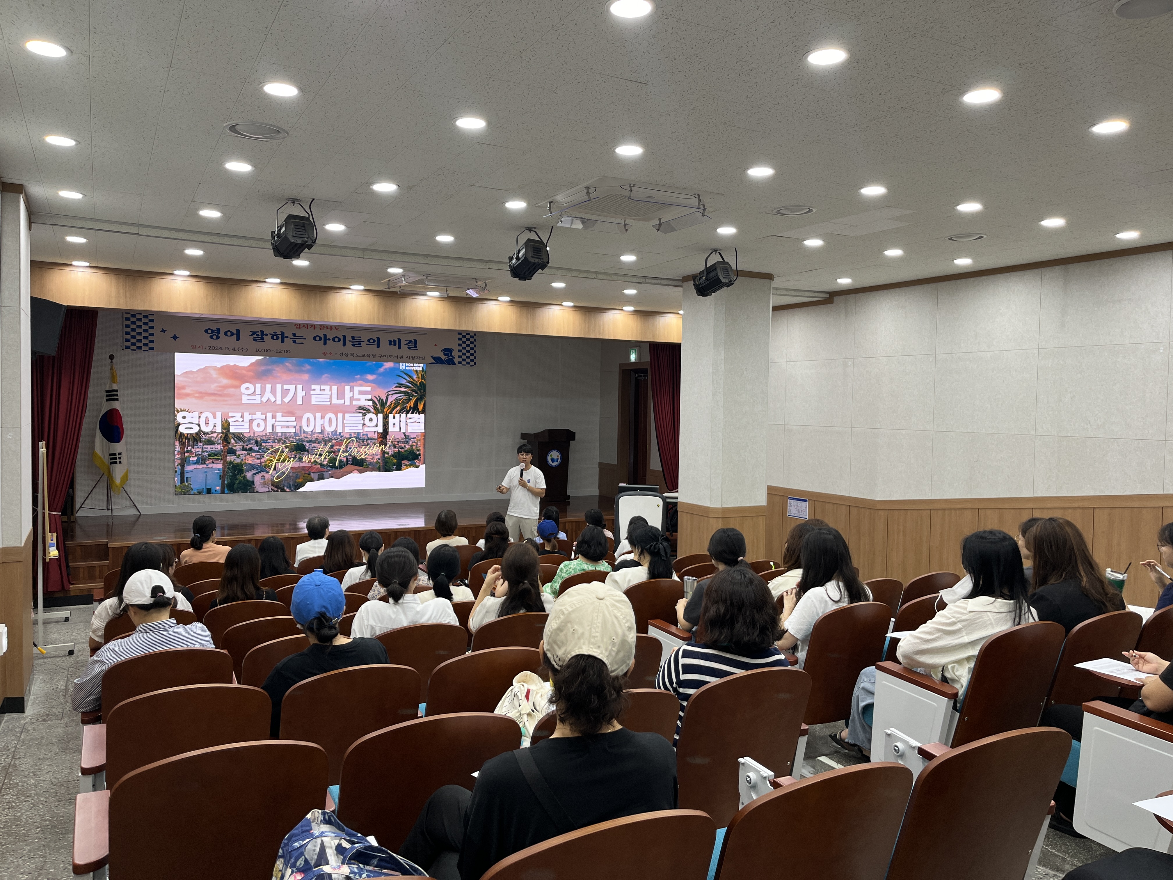 □ 강의를 통해 영어 교육에 대한 핵심은 영어에 대한 흥미 발견 및 올바른 기초 학습 습관을 형성하는 것이 중요하다고 강조했으며, 영어에 올바르게 노출되는 것이 얼마나 중요한지 사례를 통해 설명하여 학부모들의 큰 호응을 얻었다,