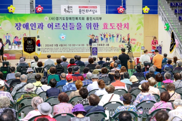 [금요저널] 이상일 용인특례시장은 4일 용인실내체육관에서 열린 ‘장애인과 어르신을 위한 효도잔치’를 찾아 행사를 축하하고 장애인 복지 증진에 힘쓴 봉사자 3명에게 표창을 수여했다.