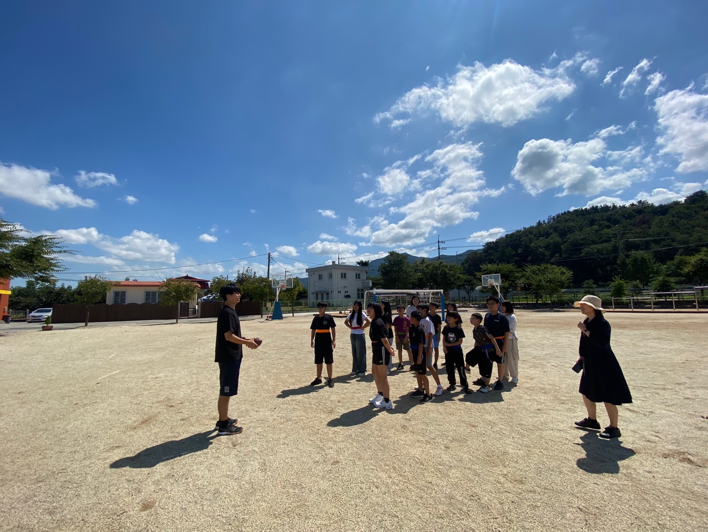 전교생에게 플래그 풋볼이라는 스포츠를 소개하고 실제 경기를 해보는 시간을 가졌다.공 던지고 받기, 수비를 피해 공을 갖고 공격하기 등 여러 활동을 통해 외국인이라는 어색함은 없어지고 서로 마음을 나누는 자리가 되었다.