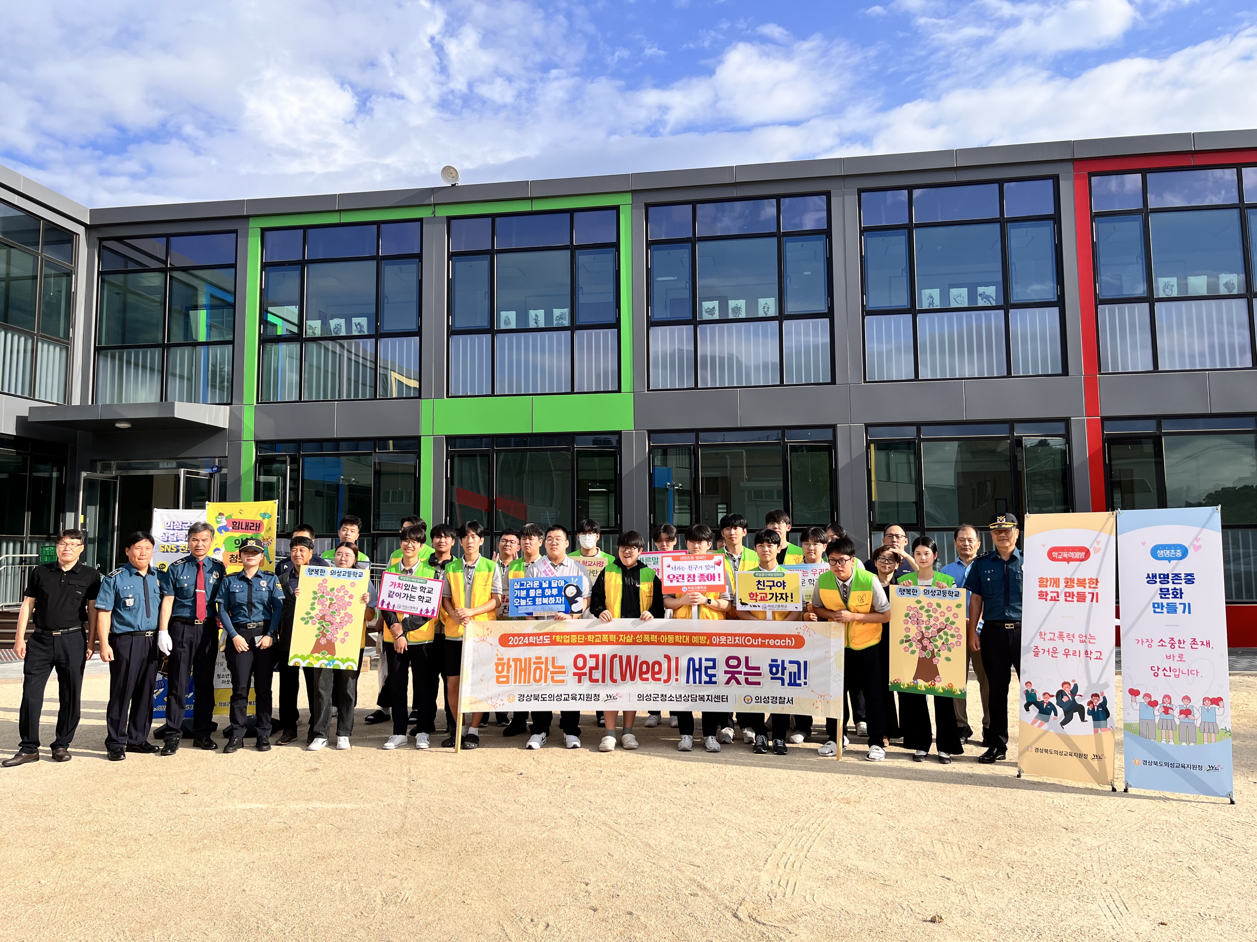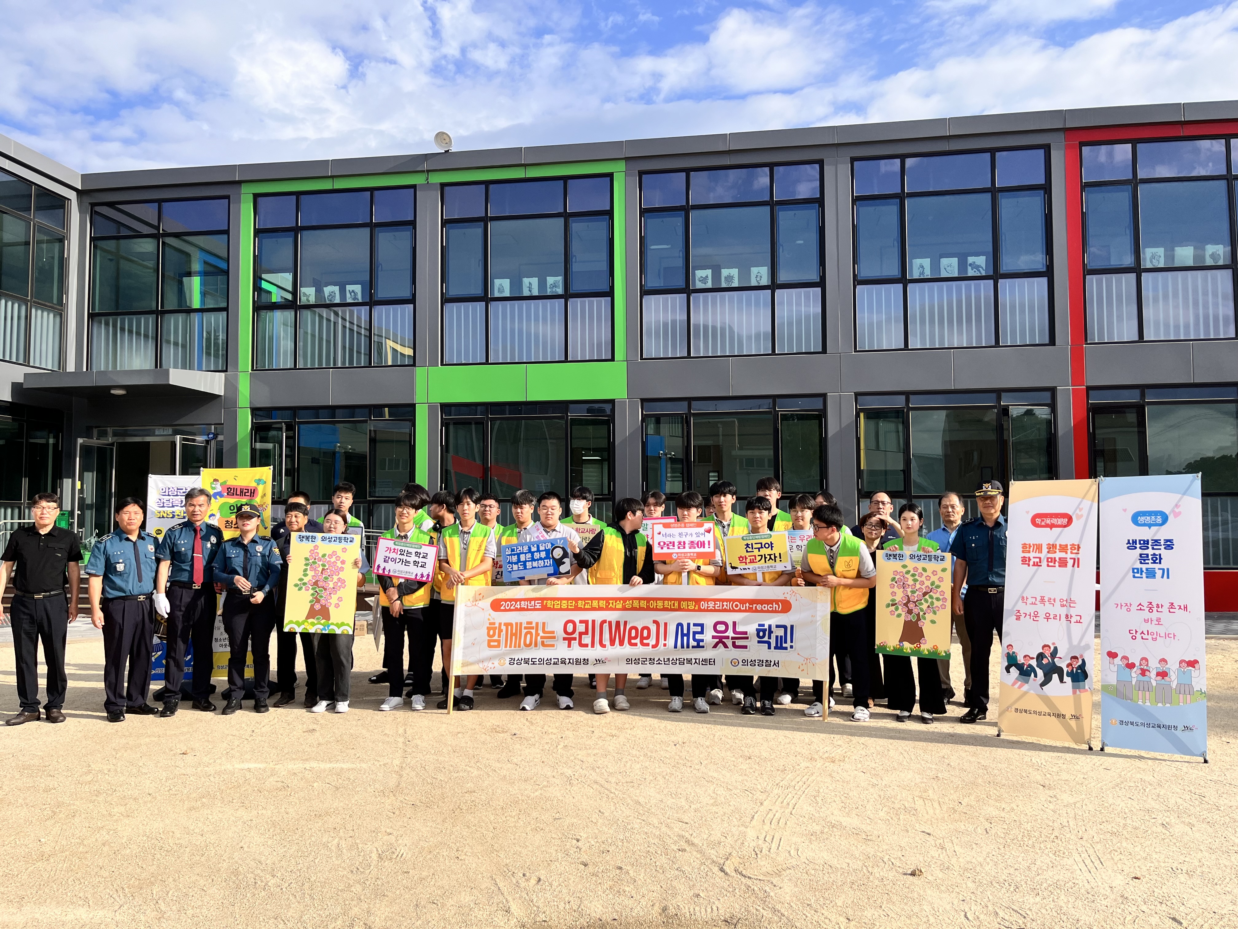 경상북도의성교육지원청(교육장 이우식) 위(Wee)센터는 새학기를 맞은 청소년들에게 학업중단‧학교폭력‧자살‧성폭력‧아동학대예방을 위한 아웃리치 활동을 9월 3일부터 9월 25일까지 의성군 내 초‧중‧고교 10개 학교 정문과 교내에서 펼친다. 지난 9월 3일 의성고, 금성중‧고를 시작으로, 의성여중(9월 4일), 의성여고, 안계고(9월 5일)에서 등교시간 또는 점심시간에 다채로운 활동을 펼쳤고, 의성중(9월 24일), 봉양중‧경북소프트웨어고(9월 25일)에서도 진행할 예정이다. 이번 활동은 의성군 청소년상담복지센터, 의성경찰서와 협력하여 운영한다.