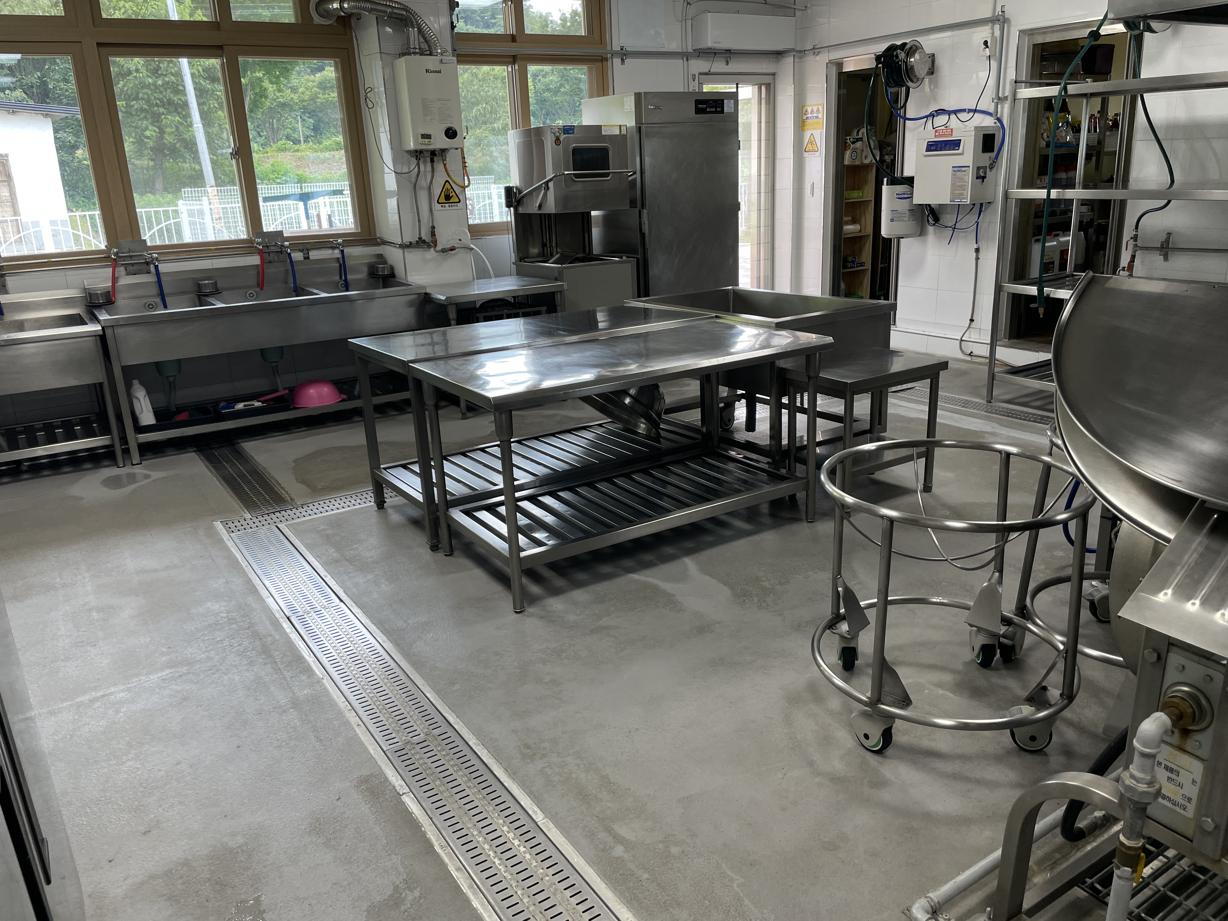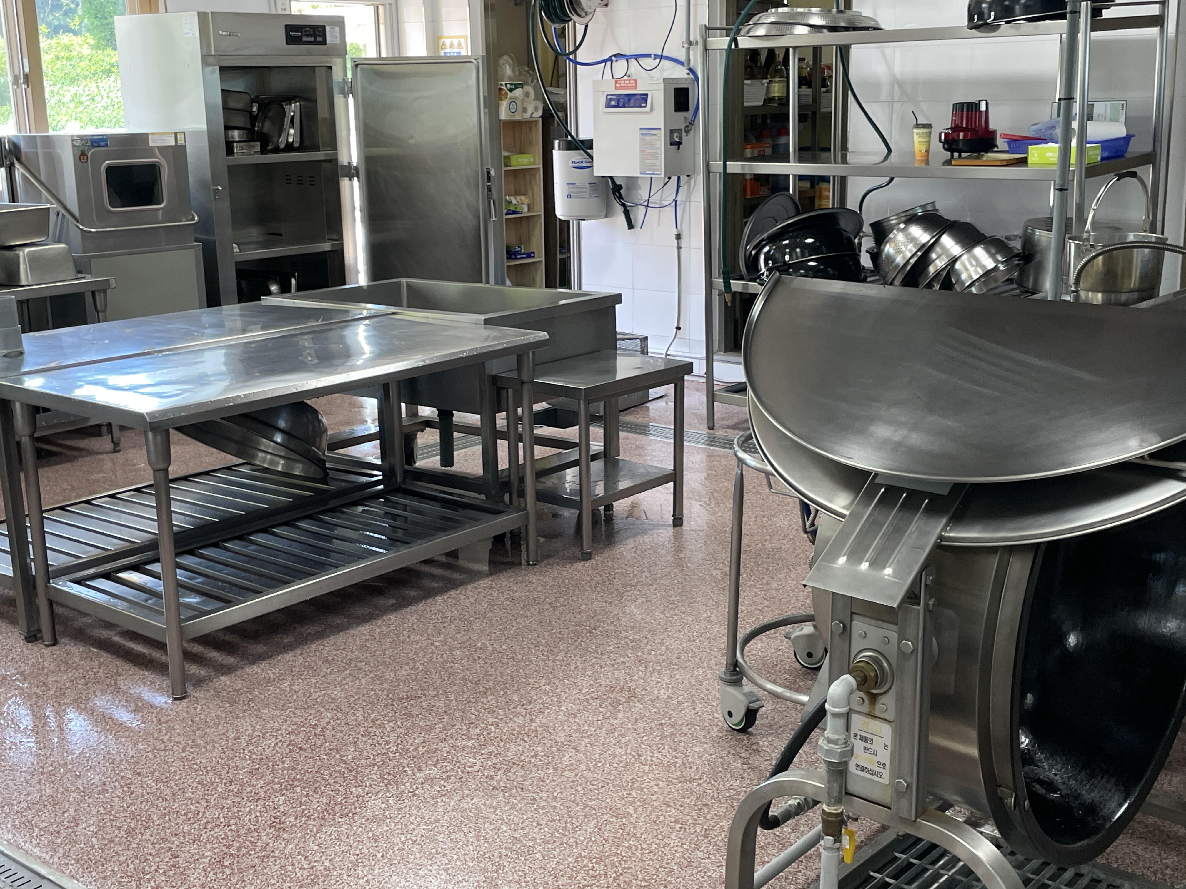 □ 기존 조리실의 바닥은 노후되어 미끄러움이 심하고 파손된 부분이 많아 조리원분들의 사고 위험성이 있었다. 이번 공사를 통해 안전한 조리 환경을 조성하였으며, 위생적인 측면에서도 개선되었다.