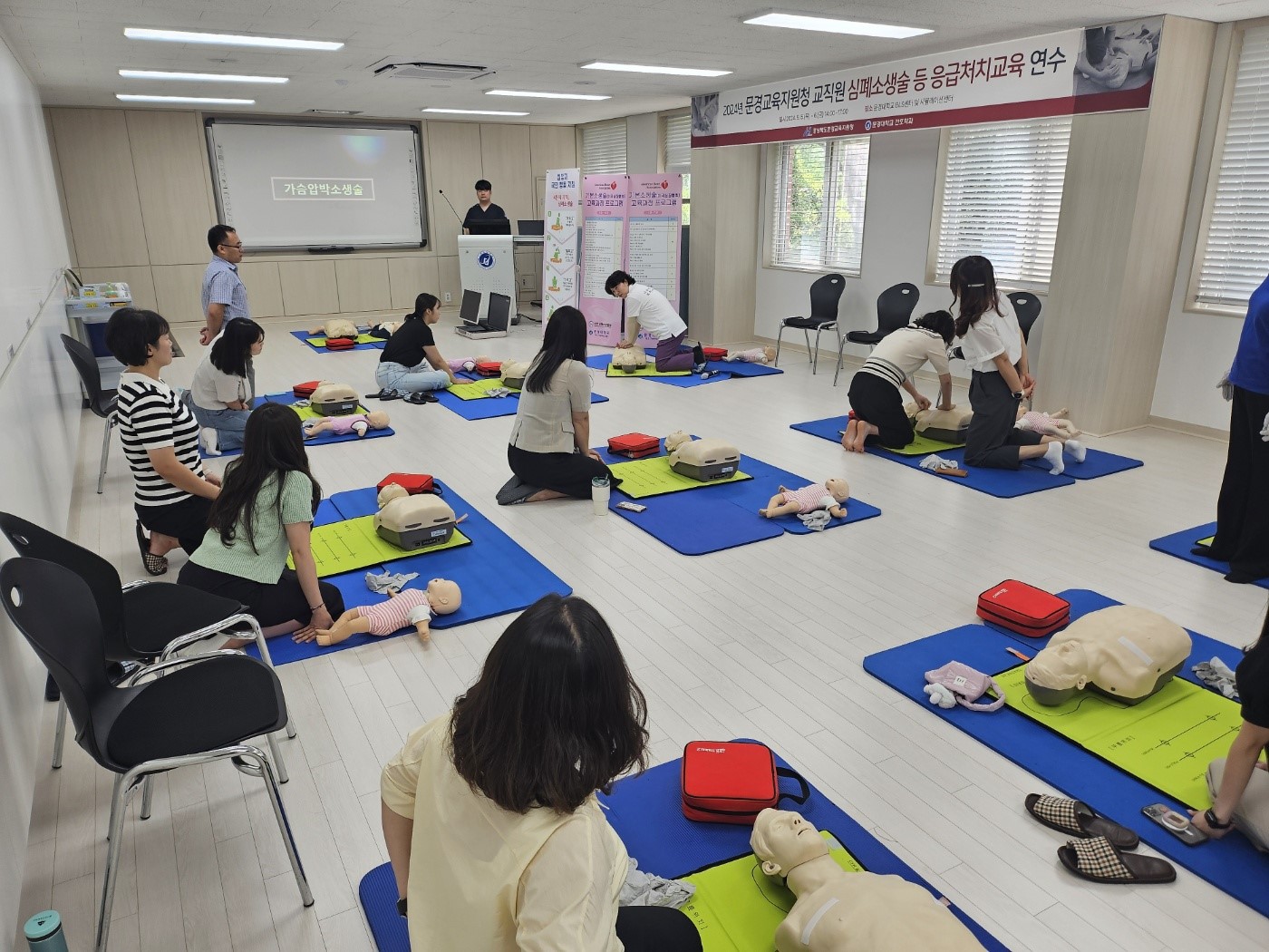 □ 경상북도문경교육지원청(교육장 이경옥)은 9월 5일부터 2일간 문경교육지원청 및 점촌도서관 소속 교직원 80여 명을 대상으로 심폐소생술 등 응급처치 교육을 실시하였다.