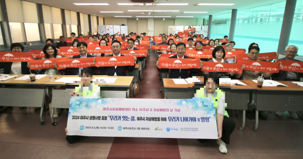 [금요저널] 여주시정신건강복지센터자살예방센터는 지난 9월 5일 여주시보건소 대회의실에서 여주시자살예방센터 개소 10주년과 자살 예방의 날을 기념해 유관기관 관계자 등 80여명이 참석한 ‘2024 여주시 생명사랑 포럼’을 개최했다.