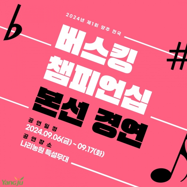 시 관계자는 “이번 버스킹 챔피언십을 통해 양주 천일홍 축제의 매력을 한층 더 높이는 것은 물론 나리농원을 찾는 많은 방문객이 다양한 공연을 즐길 수 있는 기회를 마련했다”며 “이번 경연이 성공적으로 진행되어 나리농원이 버스킹의 성지로 자리매김하는 계기가 되길 바란다”고 전했다.