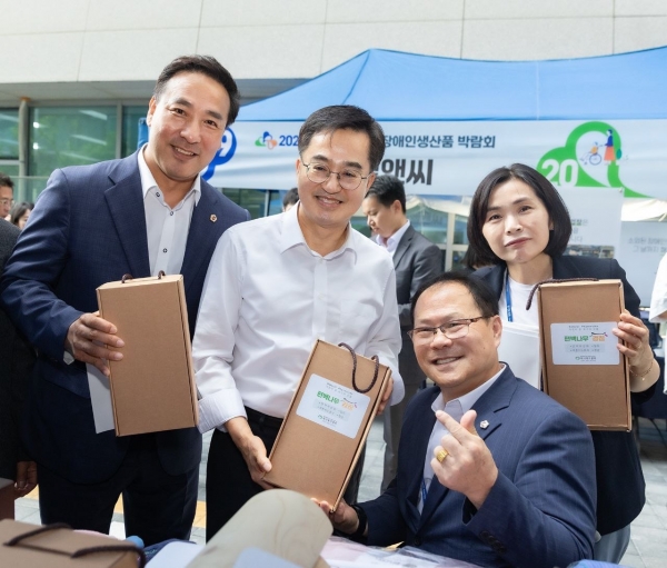 [금요저널] 경기도의회 보건복지위원회 김용성 의원은 5일 김동연 경기도지사와 황세주 의원, 박재용 의원과 함께 ‘경기도 중증장애인생산품 박람회’를 방문해 직접 상품을 구매하며 격려의 말을 전했다.