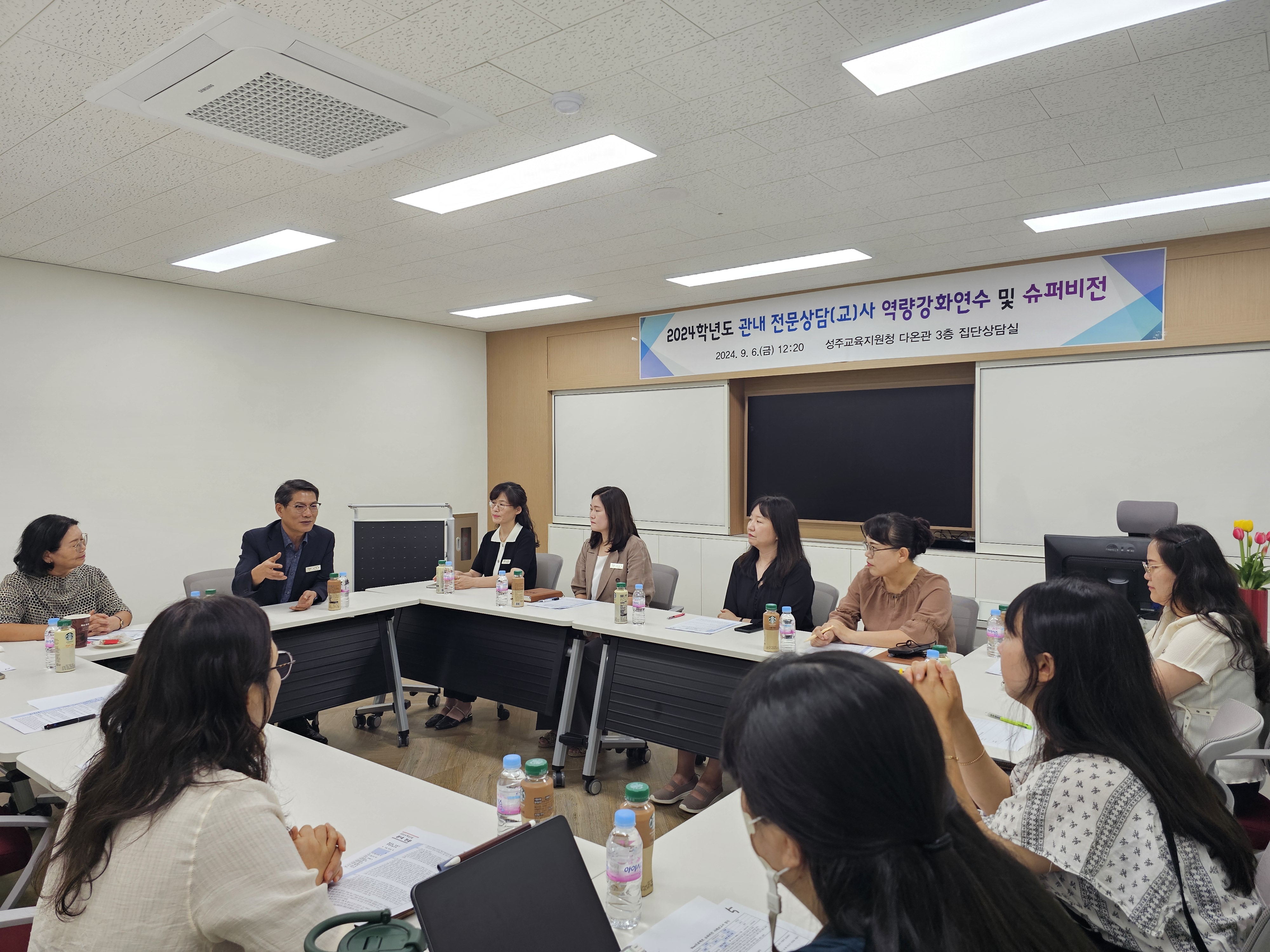 □ 성주교육지원청 Wee센터는(교육장 정수권) 9월 6일 전문상담(교)사의 전문성 향상을 위하여 성주지역의 전문상담(교)사 11명을 대상으로 다온관 집단상담실에서 슈퍼비전 및 역량 강화 연수를 실시했다.